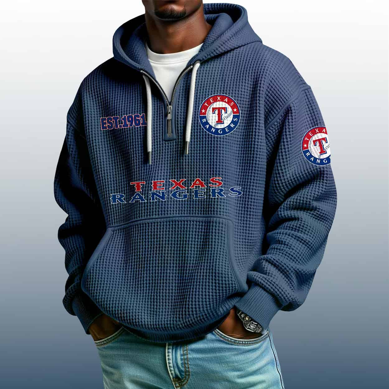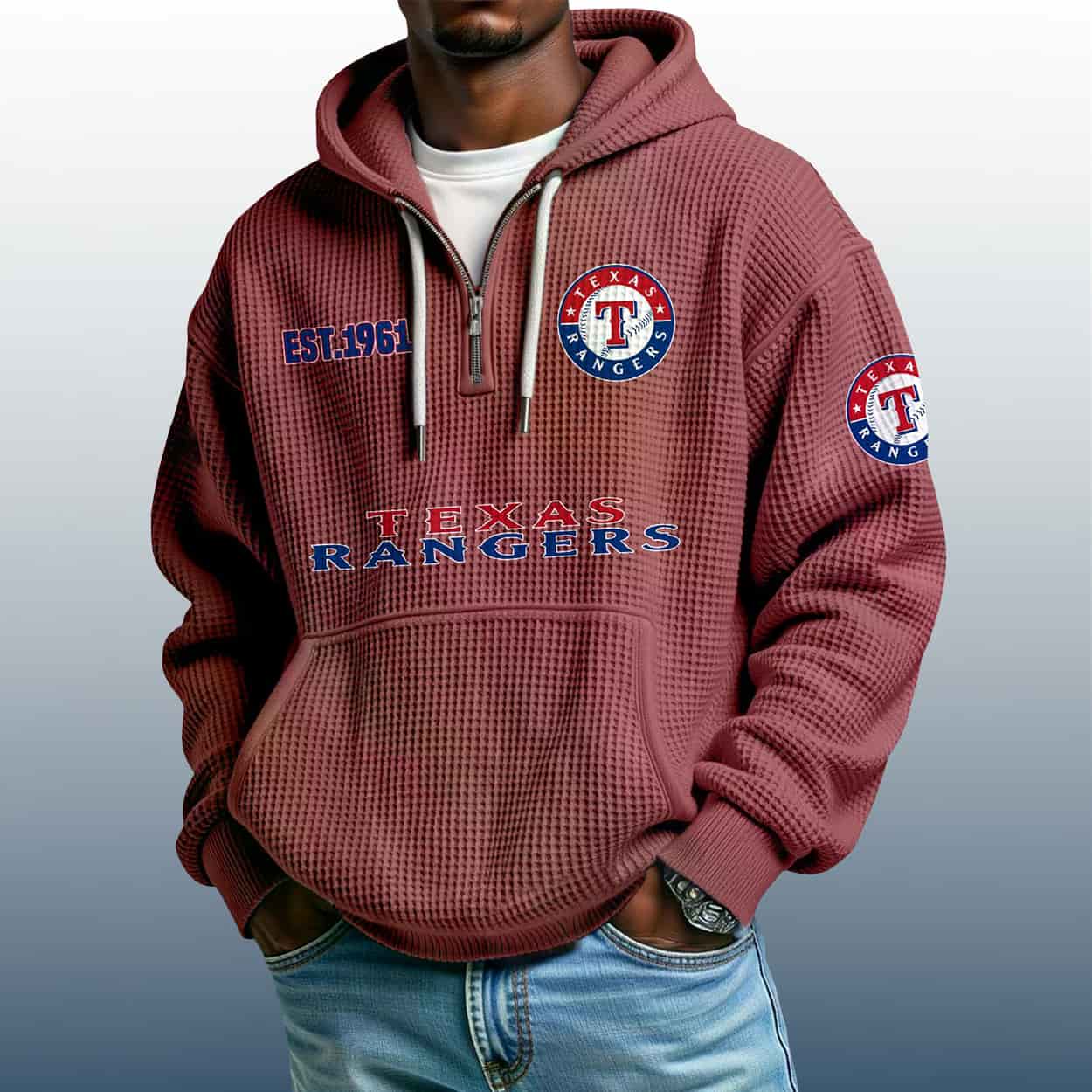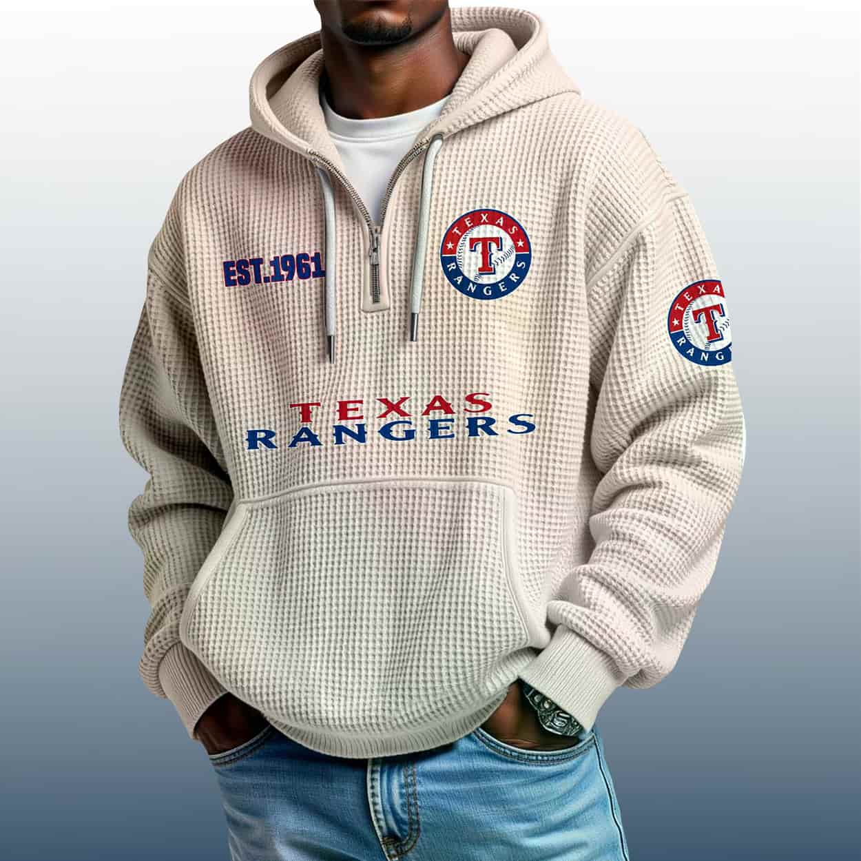 Rangers Est 1961 Quarter Zip Waffle Hoodie: Vintage Texas Pride, Modern Fan Energy
