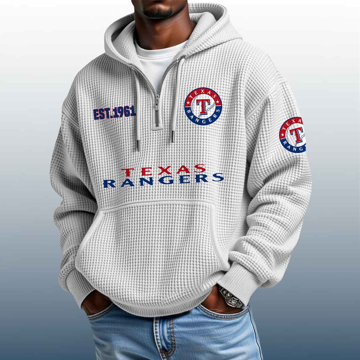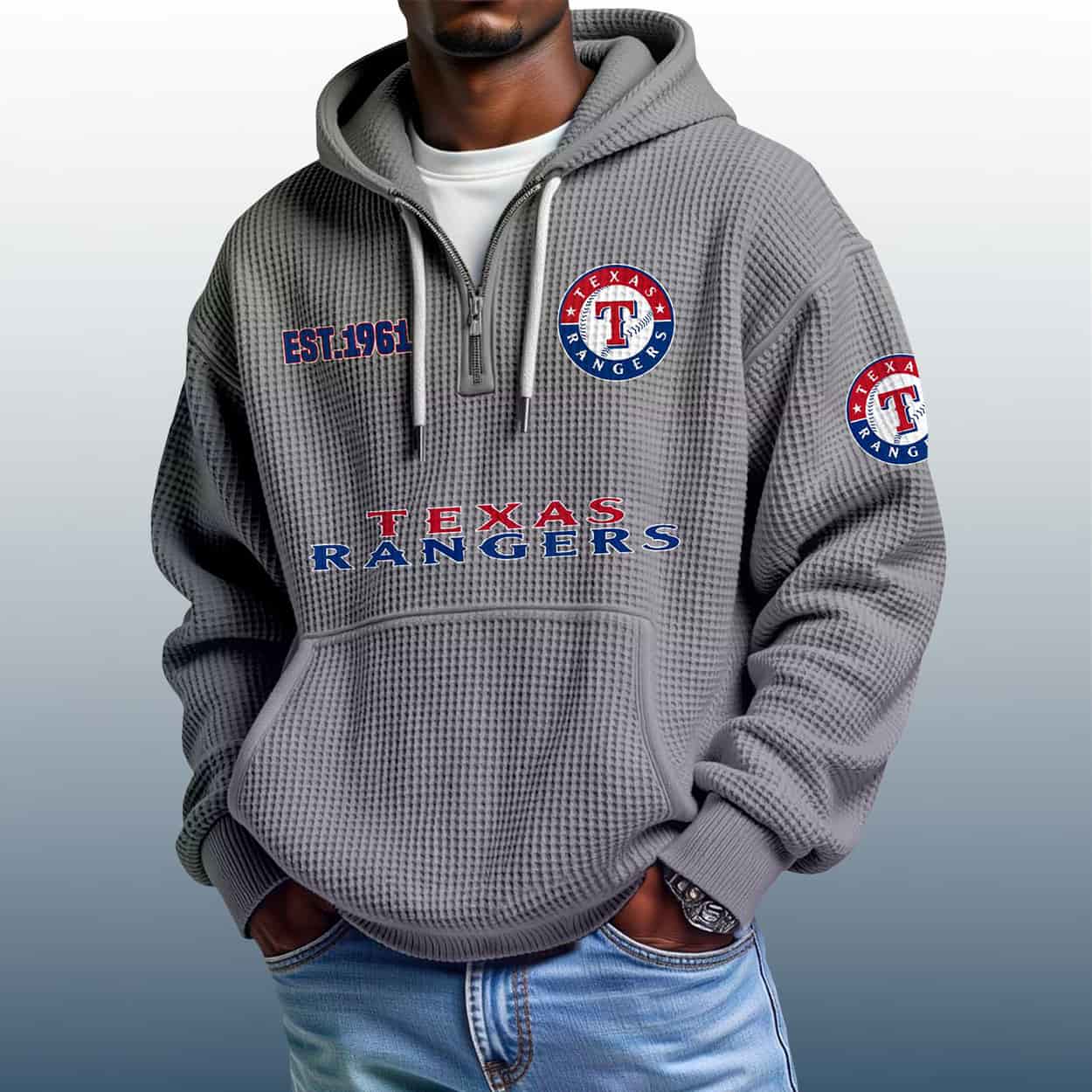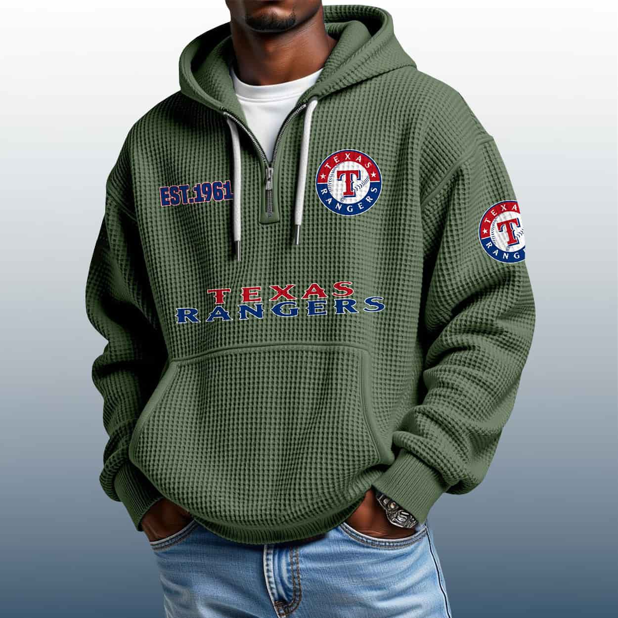 Rangers Est 1961 Quarter Zip Waffle Hoodie: Vintage Texas Pride, Modern Fan Energy