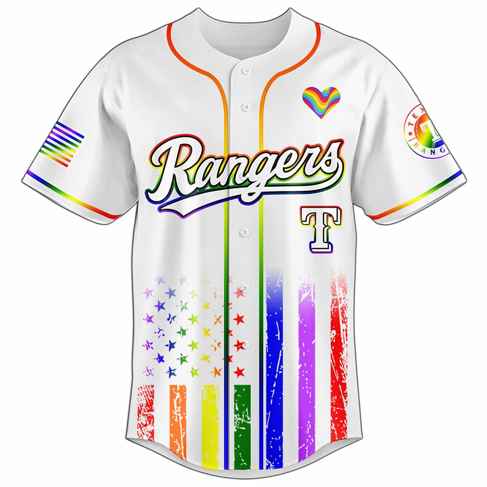 Celebrate Pride Month 2025 with the Rangers Happy Pride Month Jersey 2025! Featuring bold rainbow stripes, a heart logo, and a “Love is Love” message, this jersey blends team pride with inclusivity. Perfect for fans and allies!