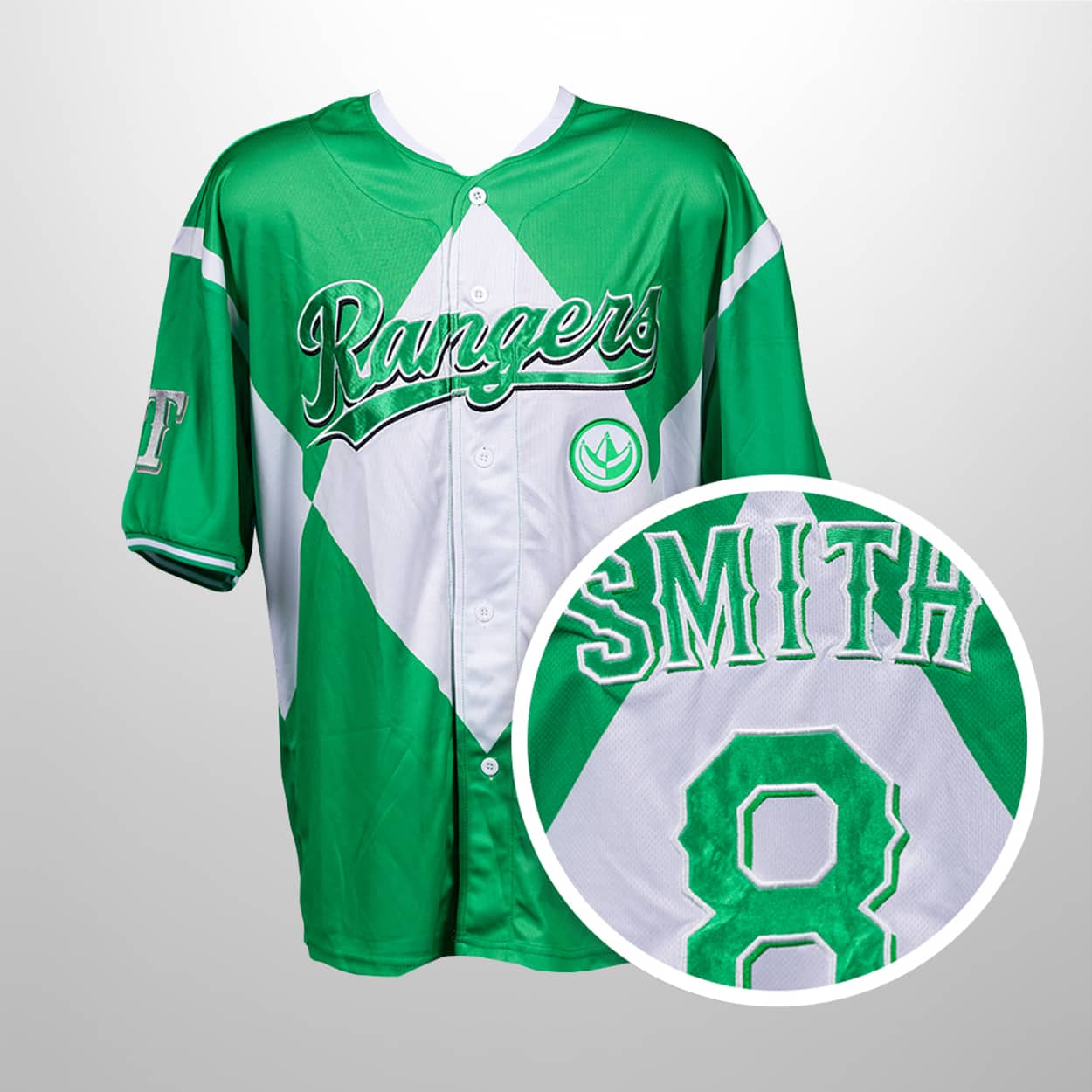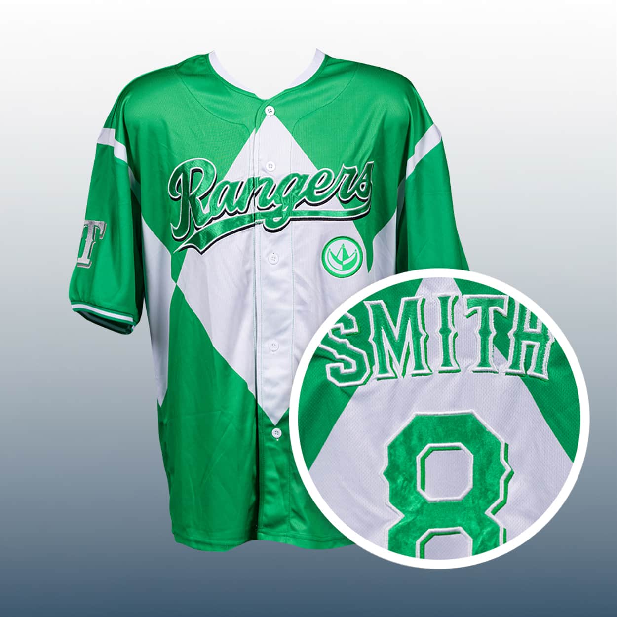 Inspired by the iconic Green Ranger, this jersey is more than just game-day gear—it’s a tribute to courage, individuality, and the power of standing out. The diamond motif nods to classic hero aesthetics, while the bold green palette captures the spirit of adventure. It’s playful, nostalgic, and designed for fans who aren’t afraid to make a statement both in the stands and beyond.