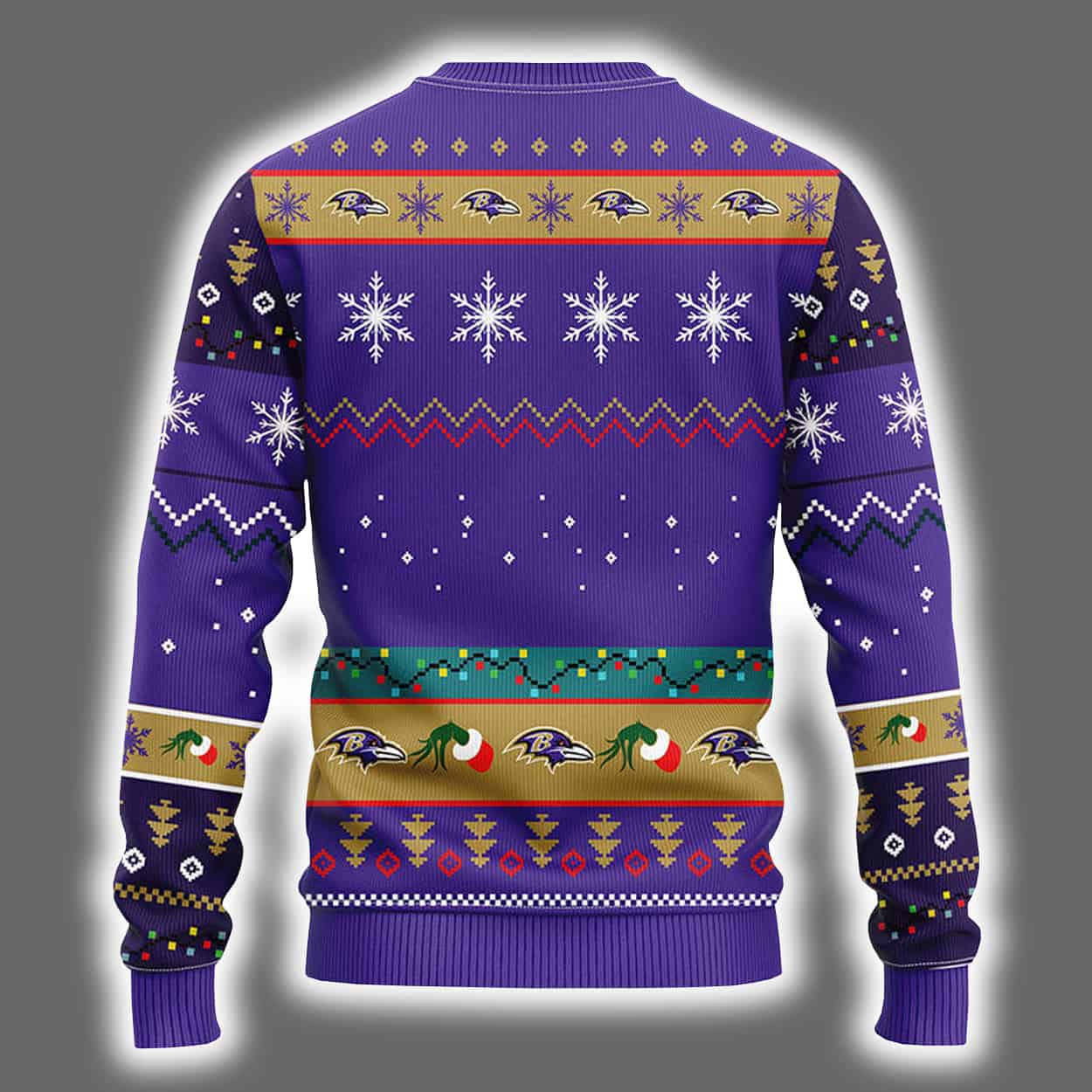 Why blend in when you can stand out? Make spirits bright—and a little wild—with the Ravens Grnch Hand Ugly Christmas Sweater. Grab yours now and let the Grinch lead your holiday parade!