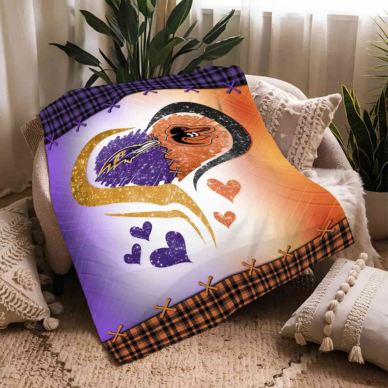 Show your Baltimore pride with the Ravens x Orioles Heart Blanket—a vibrant fusion of football and baseball spirit wrapped in one bold design.