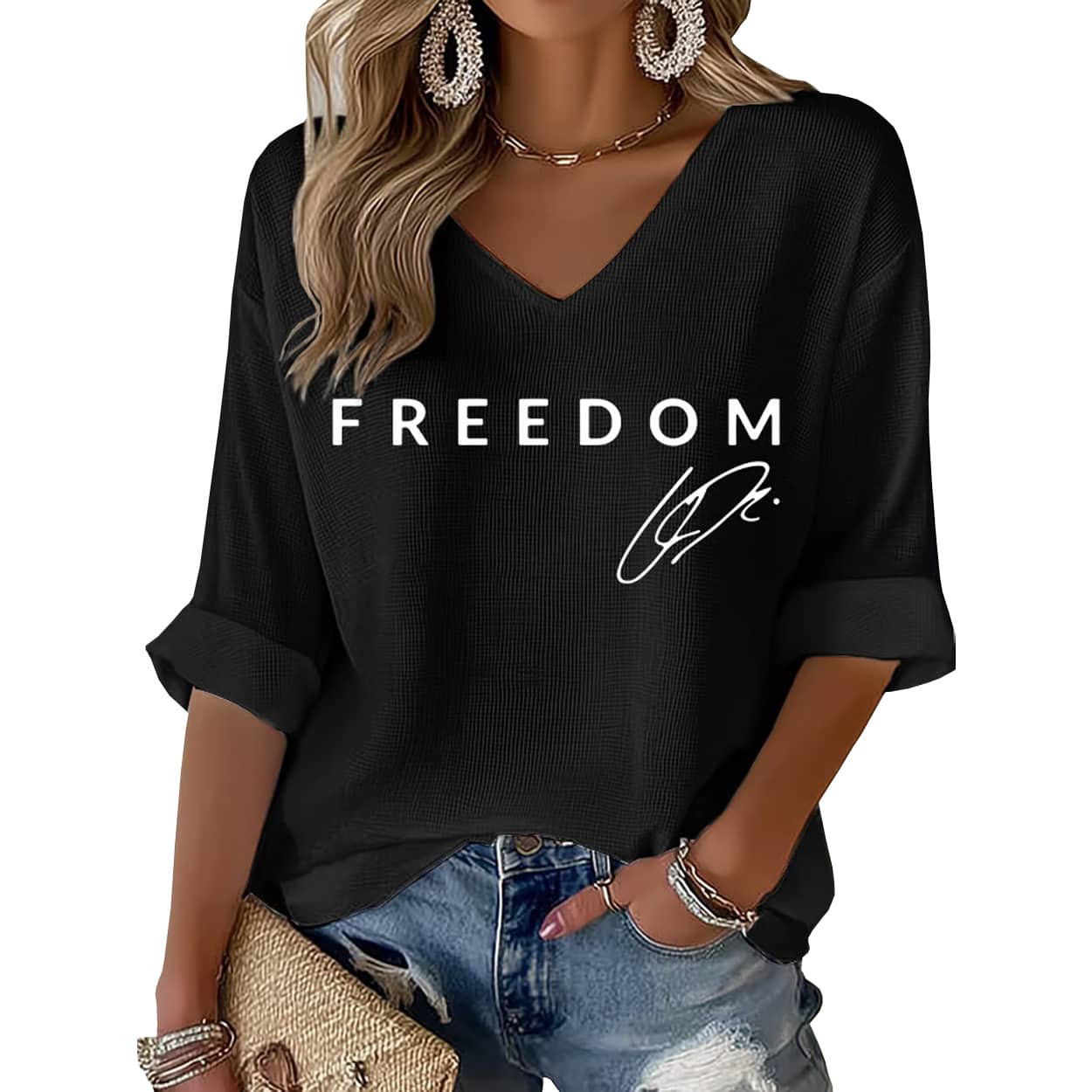 Step into boldness with this shirt. This eye-catching top features a crisp white “FREEDOM” emblazoned across the chest, paired with a stylized signature that nods to Charlie’s unmistakable mark on American conservatism. Whether you’re rallying, reflecting, or just repping your values, this shirt speaks volumes without saying a word.