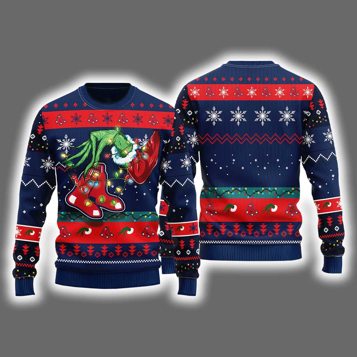 Red Sox Grnch Hand Ugly Christmas Sweater