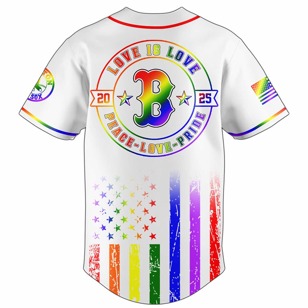 This jersey isn’t just about style; it’s a celebration of unity and acceptance. Inspired by the vibrant energy of Pride Month, the rainbow stripes—red, orange, yellow, green, blue, and purple—symbolize the diversity of the Red Sox fanbase and the universal language of love. The “LOVE IS LOVE” message on the back is a playful yet powerful nod to staying authentic, while the stars sprinkled throughout the design remind us of the bright future ahead. Crafted for bold thinkers who aren’t afraid to stand out, this jersey lets you cheer for the Red Sox while championing equality in every inning.