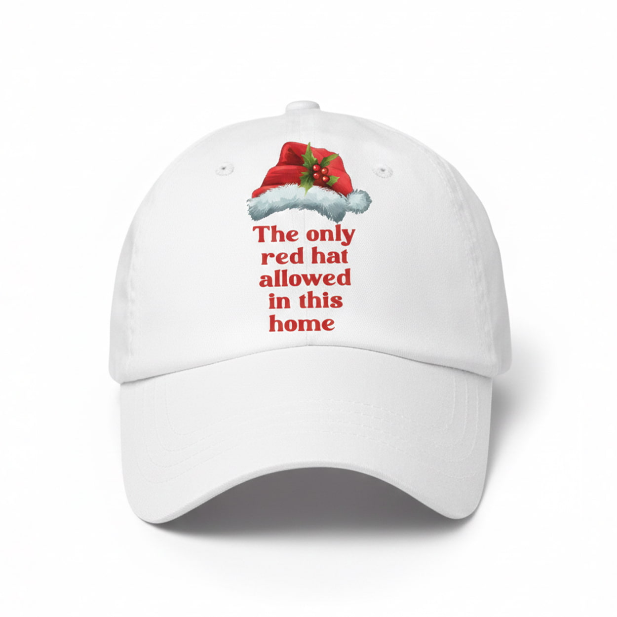 Celebrate the holidays with wit and warmth in the Retro Christmas The Only Red Hat Allowed In This Home Print Baseball Cap—a cheeky nod to festive spirit and bold personality.