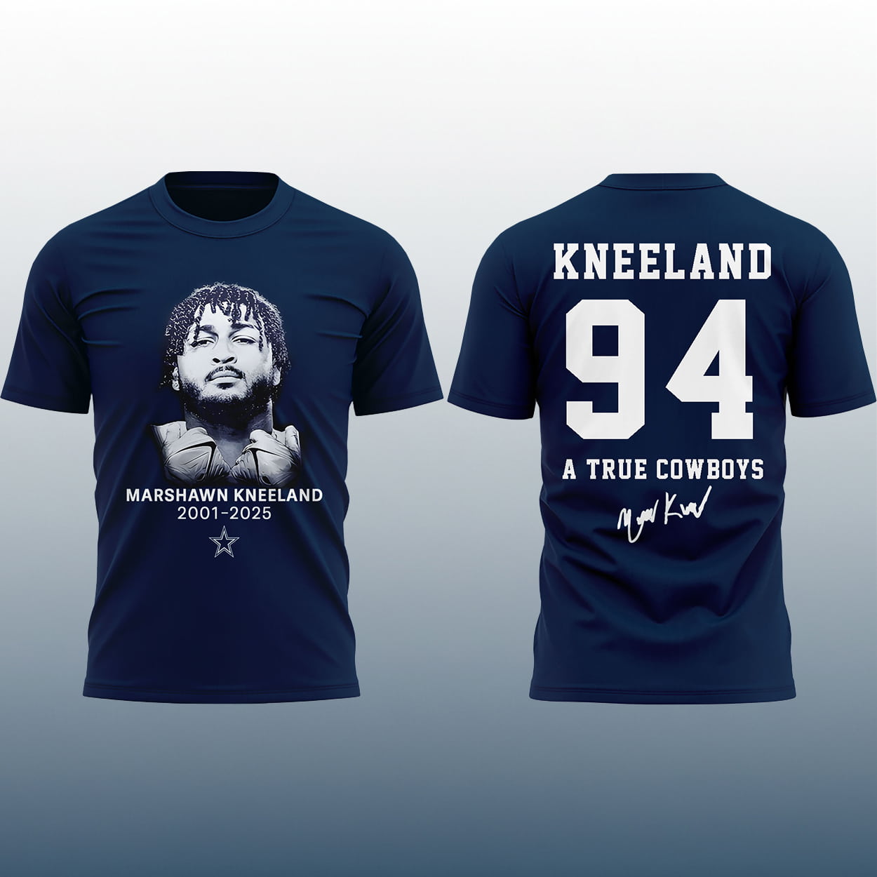 Honor the legacy of Marshawn Kneeland with the RIP 94 Marshawn Kneeland 2001-2025 Signature Two-Sided Shirt—a bold tribute to a true Cowboy, designed to inspire and remember.