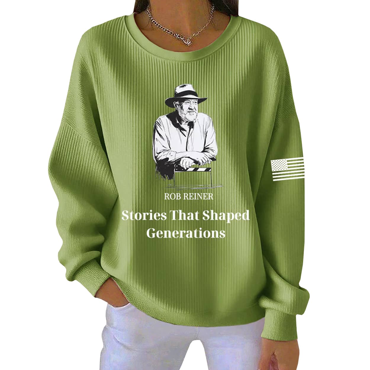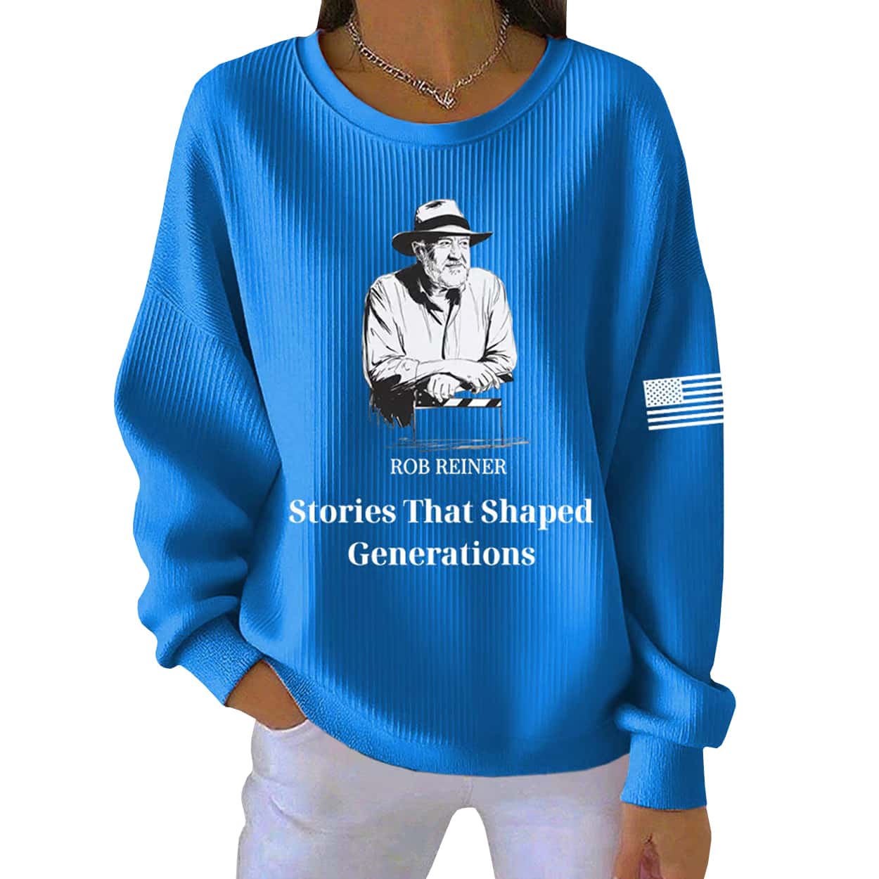 Honor a storytelling legend with the RIP Rob Reiner Stories That Shaped Generations Pit Striped Sweatshirt—bold, reflective, and timelessly cool.