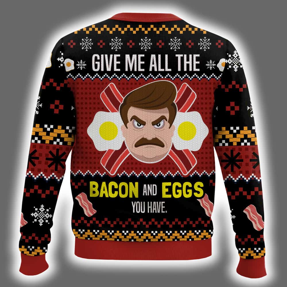 Ron Swanson Give Me All The Bacon And Eggs You Have Parks And Recreation Ugly Christmas Sweater