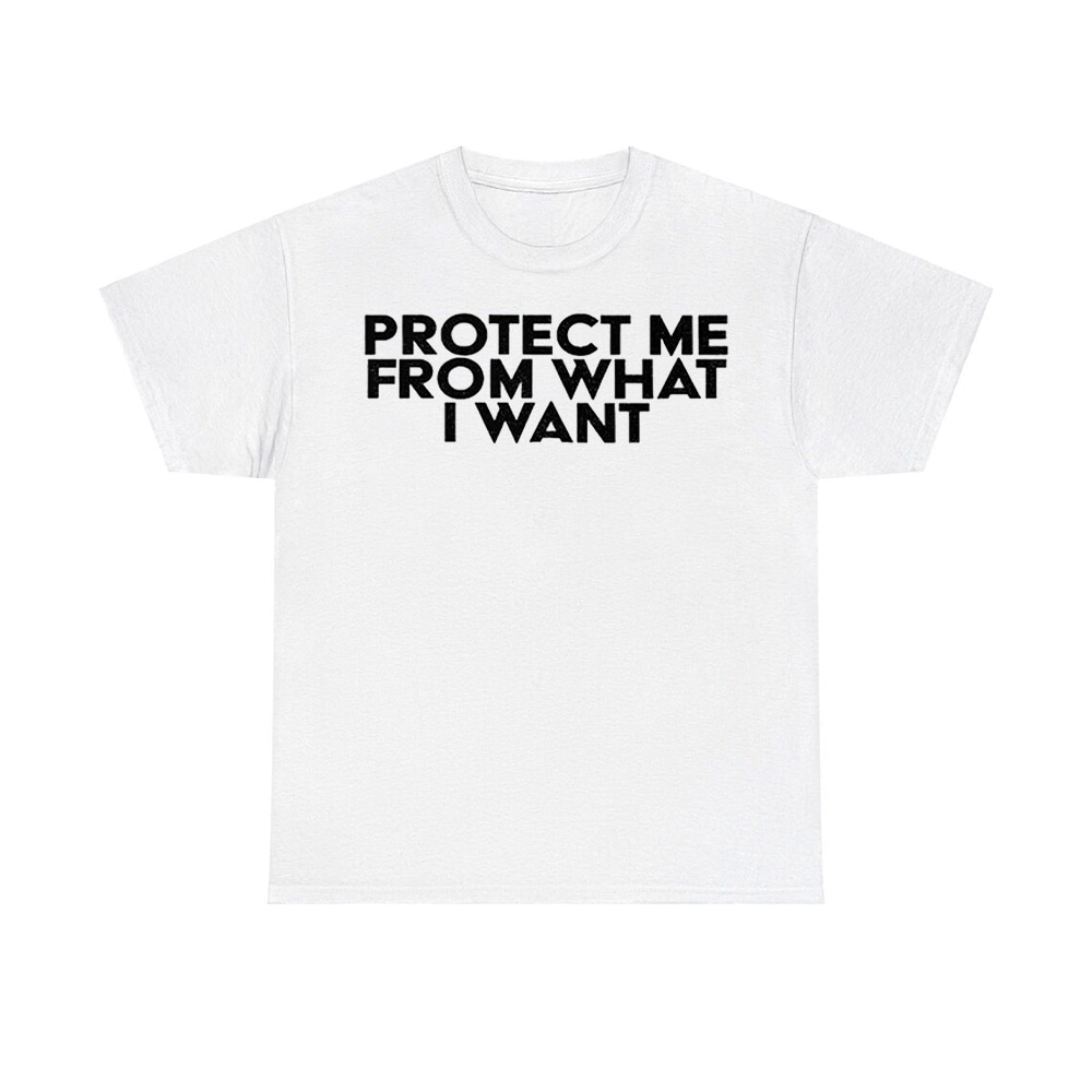 Sometimes the most powerful messages are the simplest — and this Rosalia Protect Me From What I Want Shirt proves just that. With stark black text on a clean white canvas, the shirt stops you in your tracks. Whether you’re strutting through NYC or just showing off your fashion IQ, this tee is the kind of wardrobe piece that says, “I know what I’m doing.” Its cut flatters all body types while letting the slogan take center stage. The bold sans-serif font in all caps gives the phrase a commanding presence — no frills, just facts. It’s wearable irony, infused with star power.