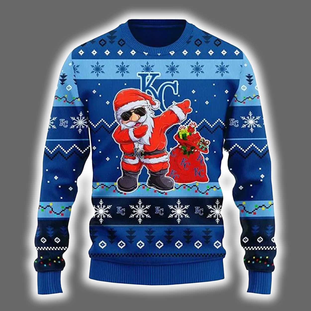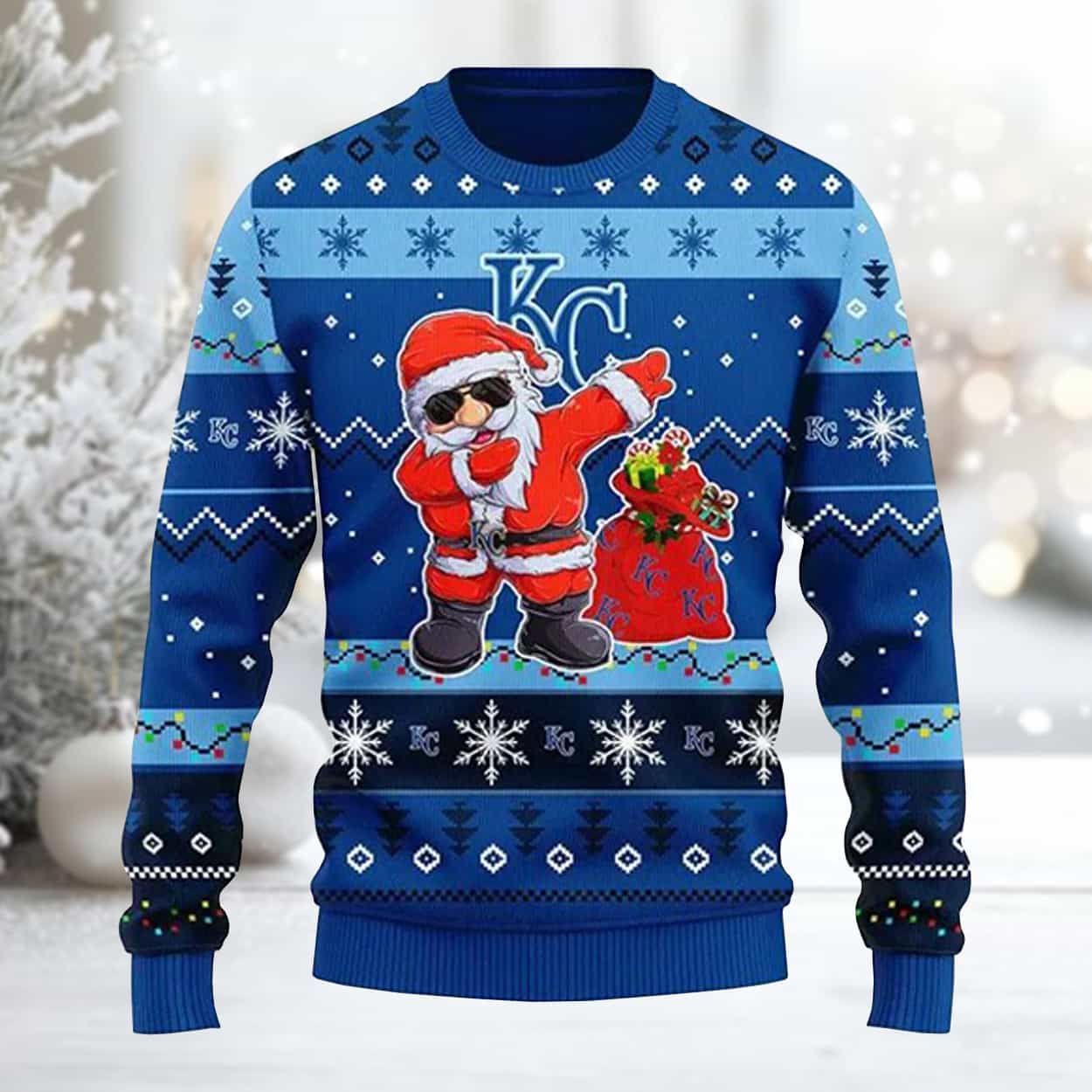 Bring the holiday heat with the Royals Dabbing Santa Claus Ugly Christmas Sweater—a bold blend of festive fun and Kansas City pride that’s perfect for fans who love to stand out.