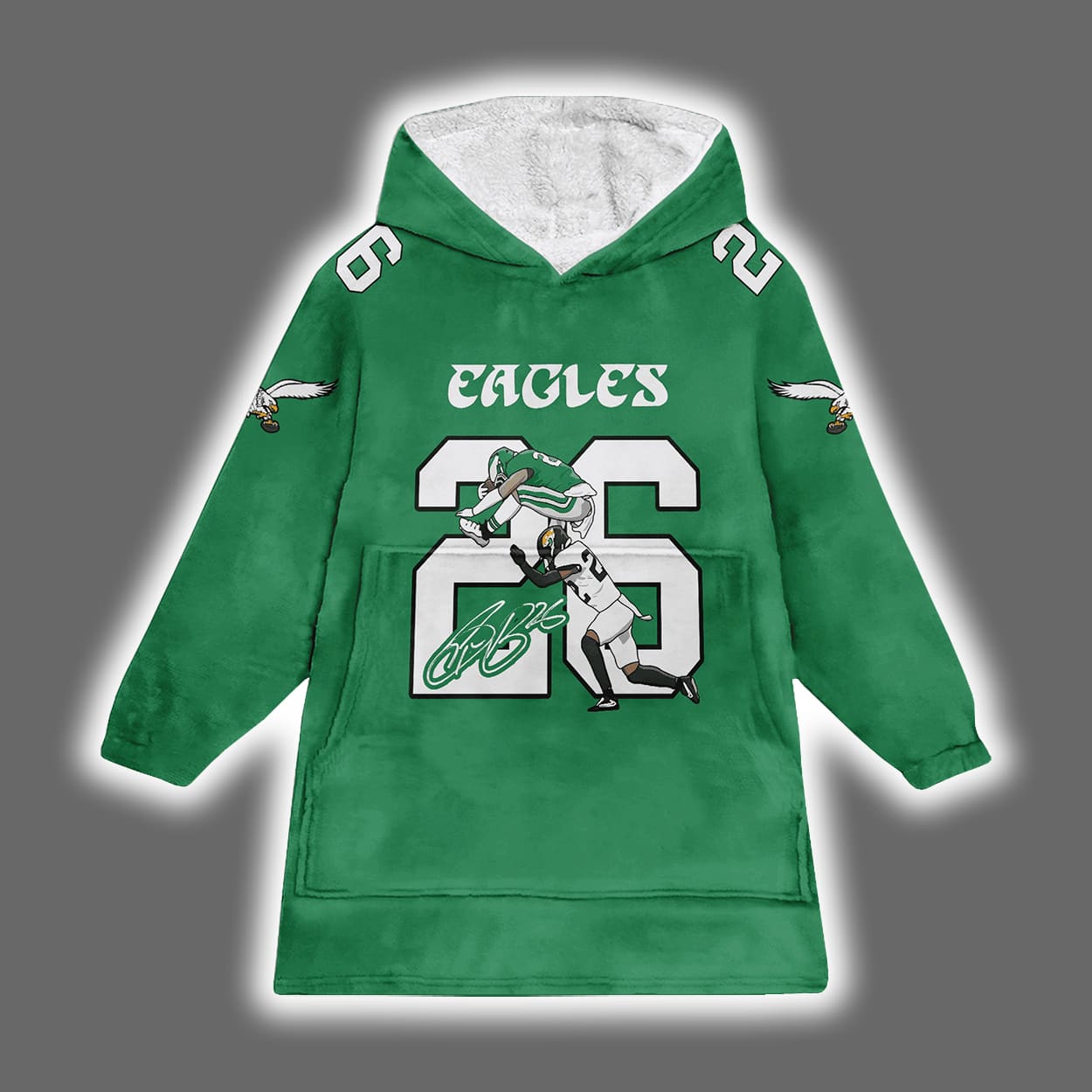 Fly high in comfort and team pride with the S.B 26 Philadelphia Football Signature Unisex Blanket Hoodie — a bold tribute to Eagles fandom and the electrifying energy of number 26.