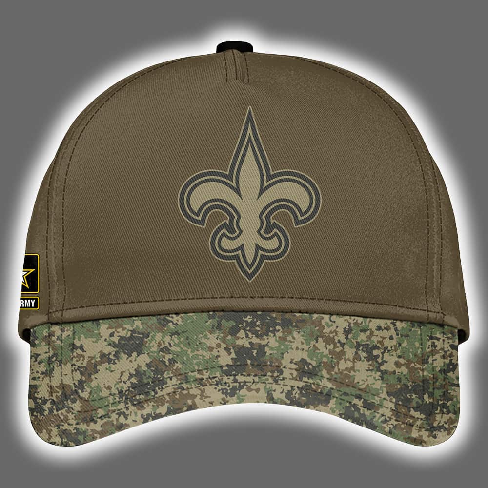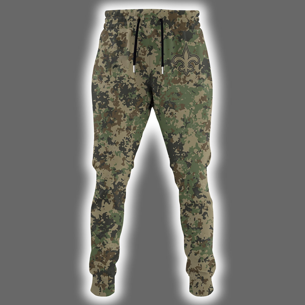 Celebrate the New Orleans Saints and honor 250 years of U.S. Army legacy with this Saints US Army 250th Birthday Celebration Night Game 2025 Hoodie Joggers Cap—featuring a camo hoodie, joggers, and cap that fuse military pride with football passion.