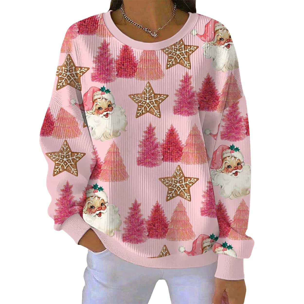 Think Pink This Christmas: The Santa Christmas Tree Ribbed Round-Neck Pink Sweatshirt for Holiday Rebels