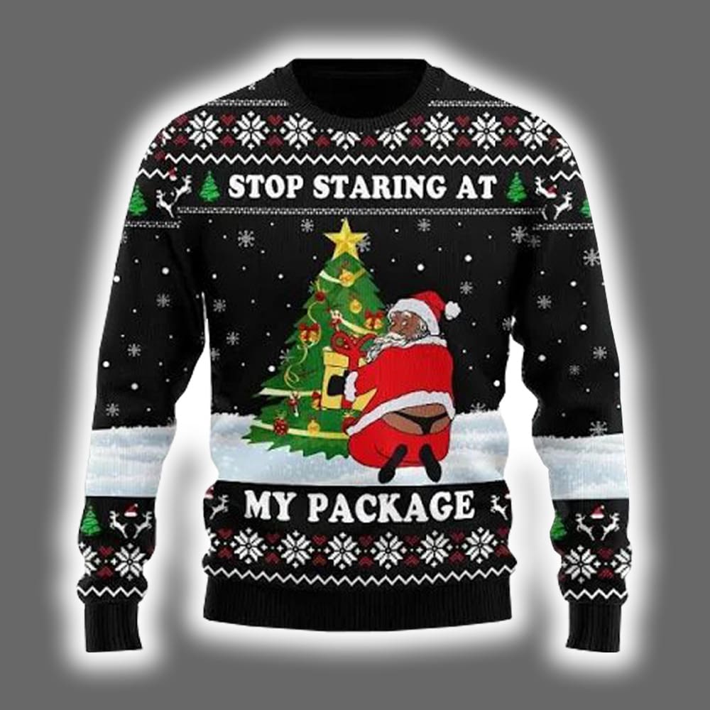 Santa Naughty Stop Staring At My Package Ugly Christmas Sweater