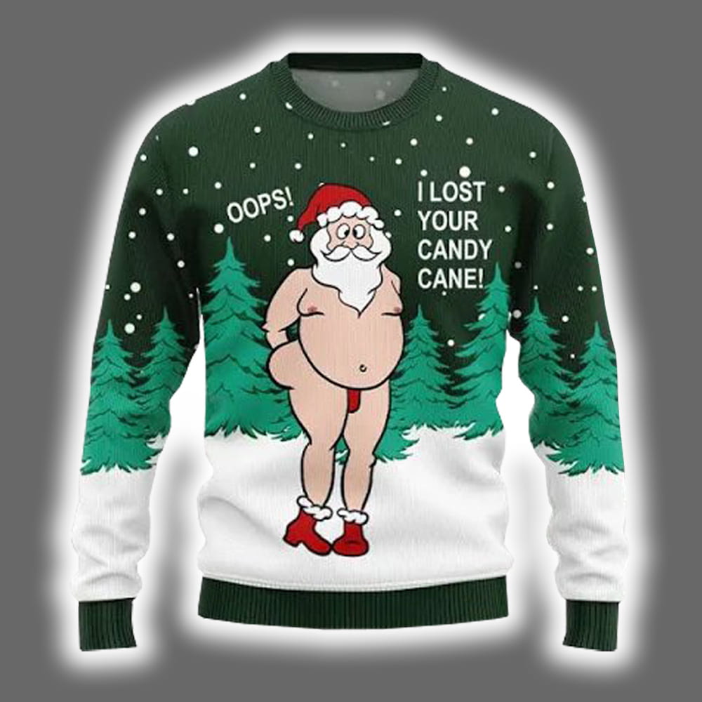 Santa’s Sweetest Slip-Up — The Santa Oops I Lost Your Candy Cane Ugly Christmas Sweater That Dares to Be Naughty