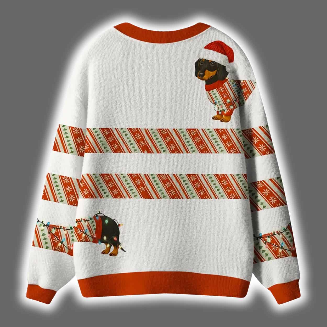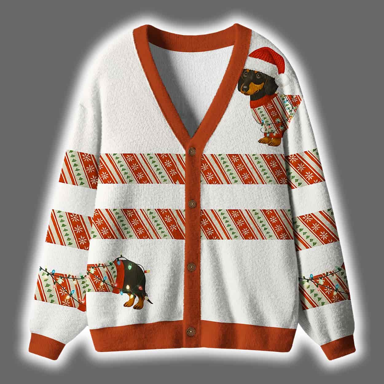 This cardigan is a tribute to those who believe the holidays are best celebrated with laughter, love, and a little bit of puppy magic. It’s designed for the bold-hearted who aren’t afraid to show off their festive flair and their love for four-legged friends. Whether you’re attending a holiday party or just spreading joy on a winter stroll, this piece says you’re here to celebrate with style and a smile.