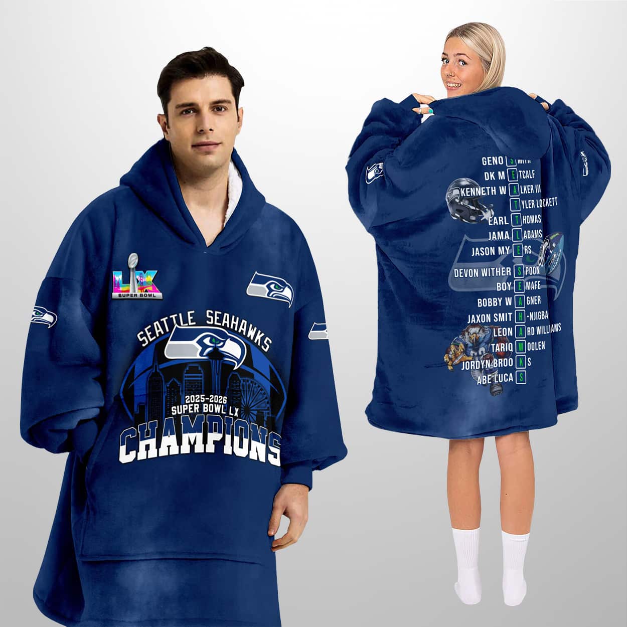 Blanket the Competition: Seahawks 2025-2026 SB LX Champions Blanket Hoodie