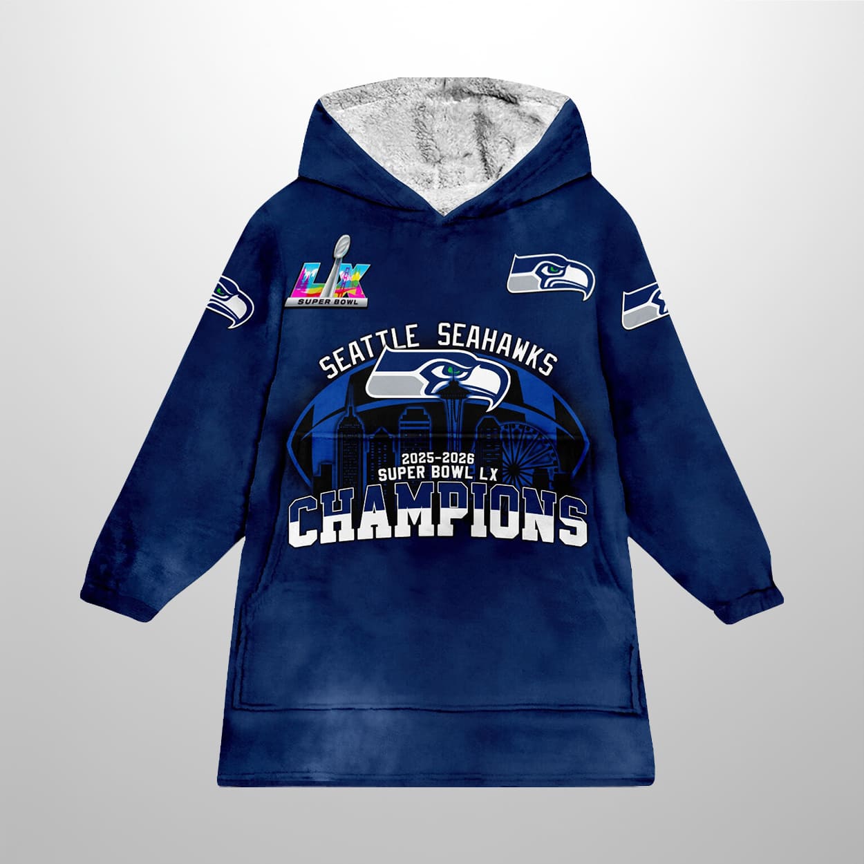 Seahawks 2025-2026 SB LX Champions Blanket Hoodie