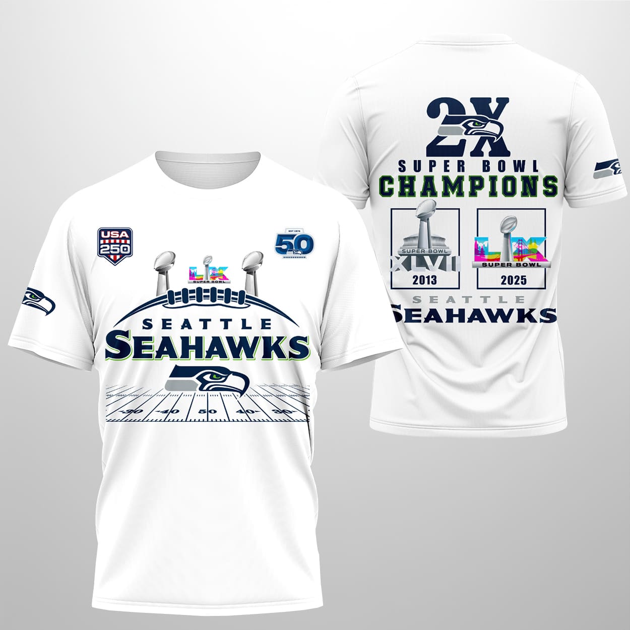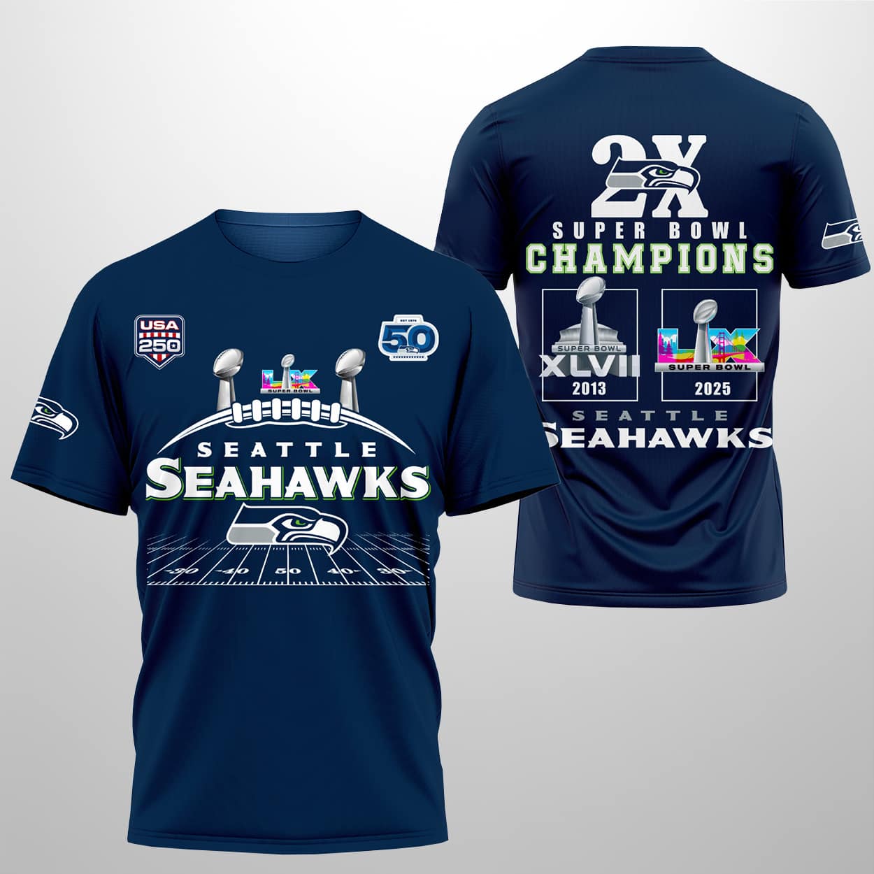 Seahawks 2025 2X SB LX Champions USA 250 Shirt