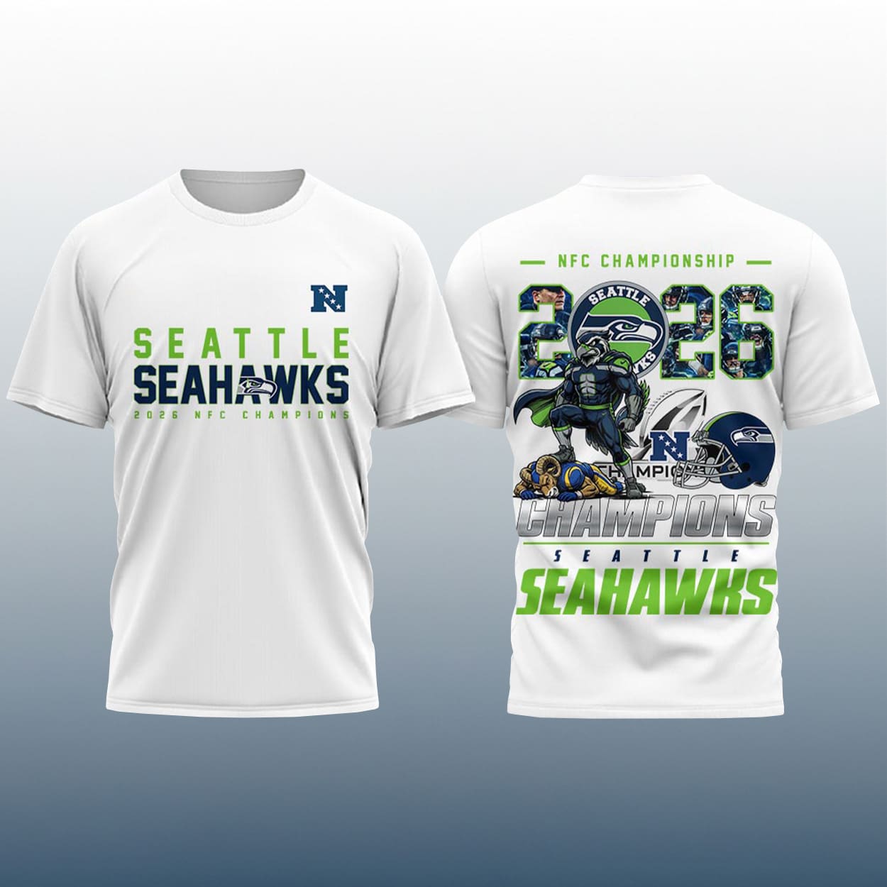 Celebrate the Seahawks’ historic 2026 victory with the Seahawks 2026 NFC Championship Champions Shirt. Featuring bold graphics and a dominant mascot design, it’s the ultimate fan gear.