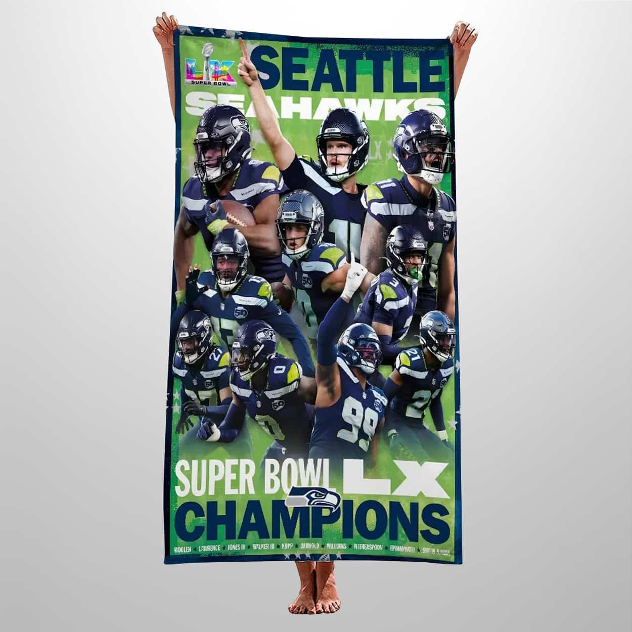 Celebrate the Seahawks’ historic SB LX victory with the Seahawks 2026 SB LX Champions Beach Towel. Featuring a vibrant layout of the winning roster and the iconic LX logo, it’s the ultimate tribute for every member of the 12s.