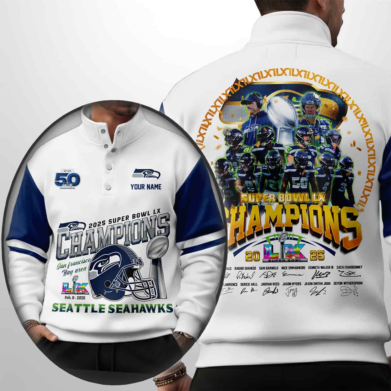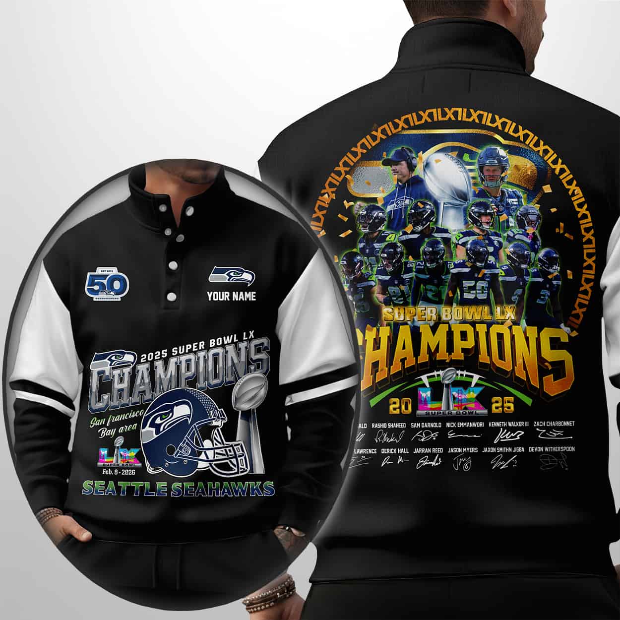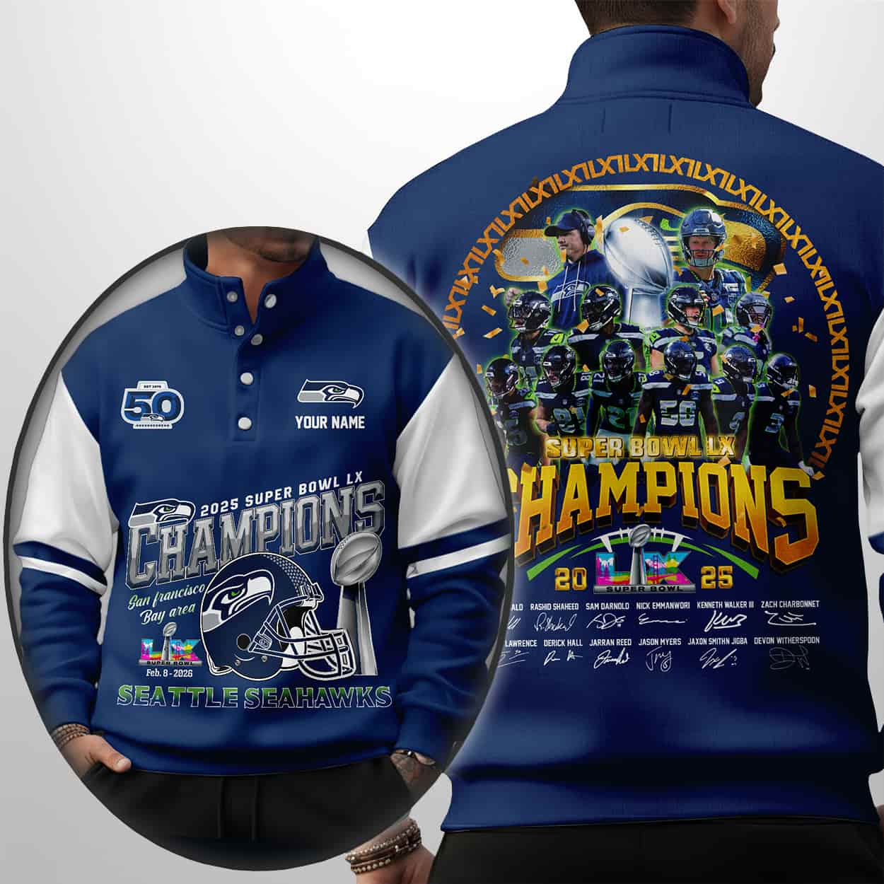 The “Western Style” isn’t just a name; it’s a tribute to the Seahawks’ absolute takeover of the San Francisco Bay Area during the 2025 season. The sleek, snap-button collar provides a modern, elevated look that sets it apart from your average game-day gear. It captures the “Dark Side Defense” energy that led Seattle to their second Lombardi Trophy, blending rugged western aesthetics with elite championship prestige. With a customizable “Your Name” feature on the chest, you can officially join the roster of the 12s who saw the Seahawks conquer the NFC and the world.