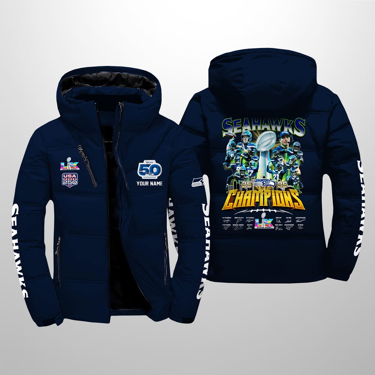 Seahawks 25-26 Super Bowl LX Champions Down Jacket – Bold Pride, Legendary Victory