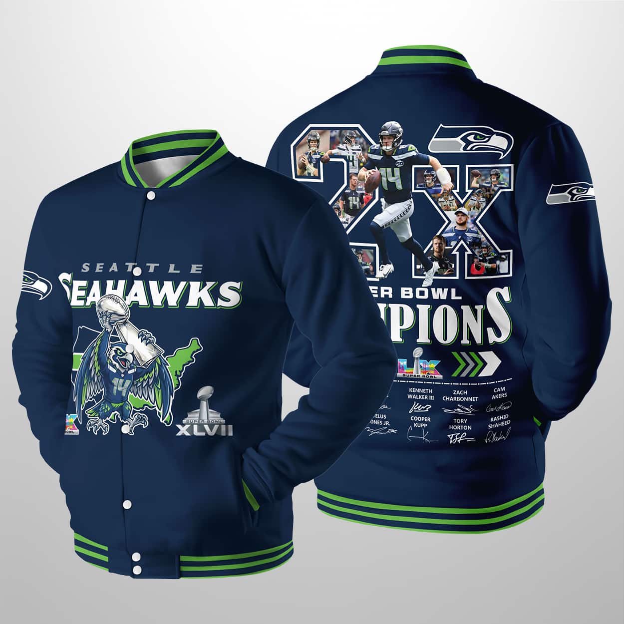 Seahawks 2X SBowl Champions 2026 Baseball Jacket