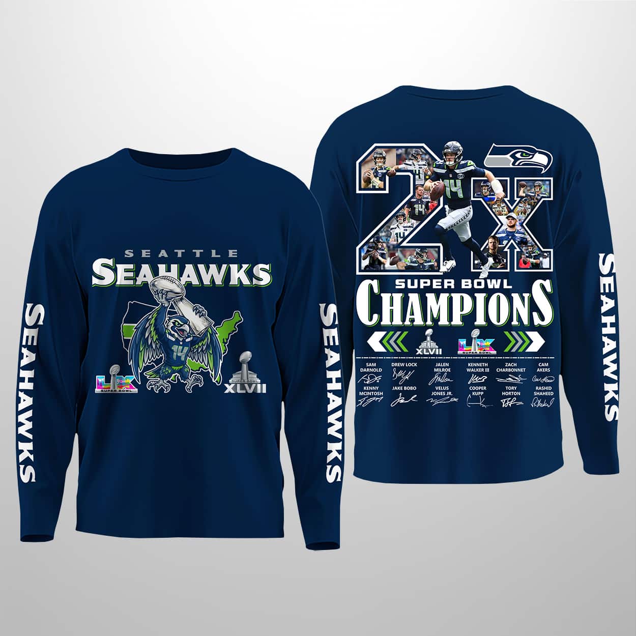 The Seahawks 2X SBowl Champions 2026 Sweatshirt isn’t just apparel—it’s history you can wear. Relive the roar of victory, honor the champions, and let your Seahawks pride shine every time you put it on.