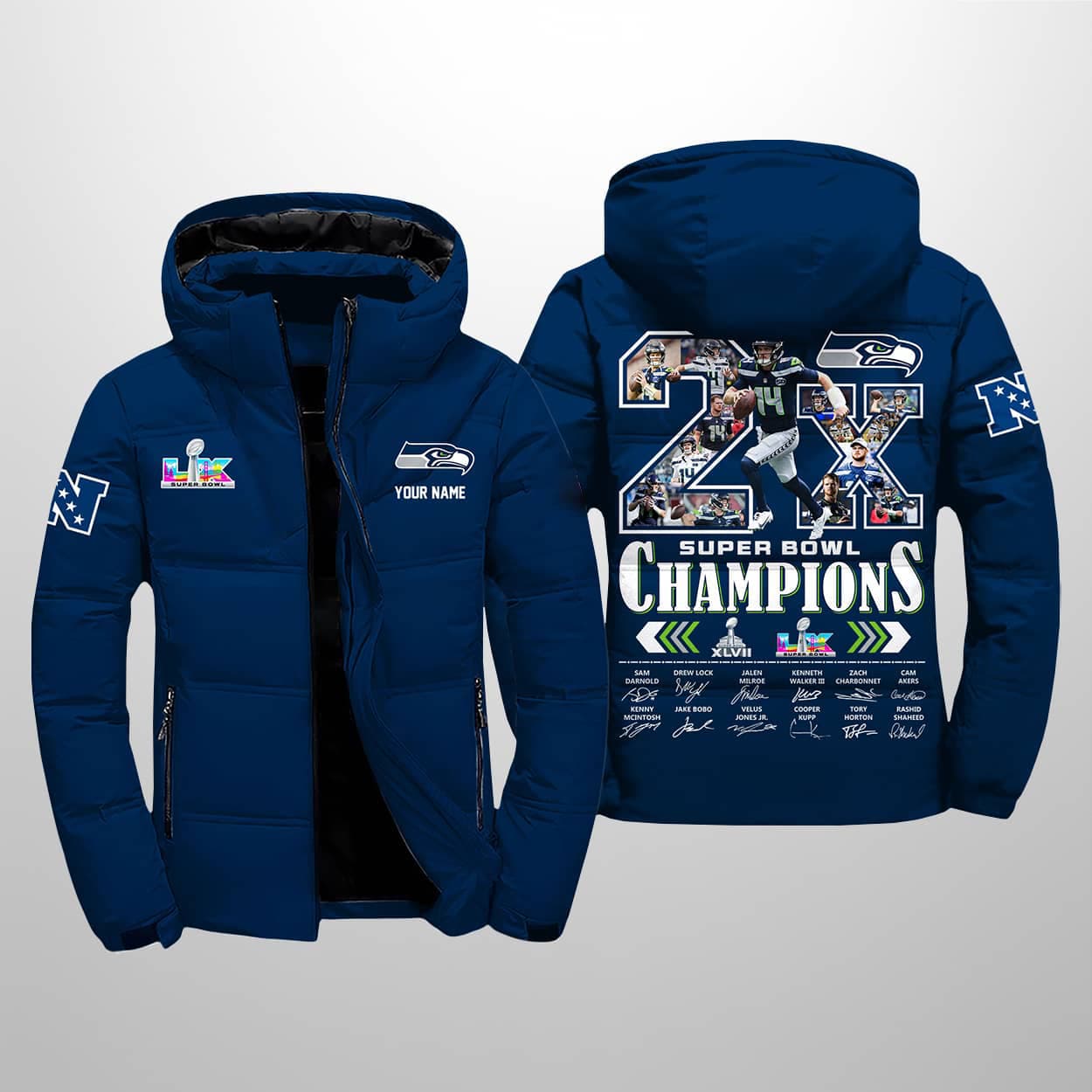 Be the first to review “Seahawks 2X SBowl Champions 2026 Winter Down Jacket” Cancel reply