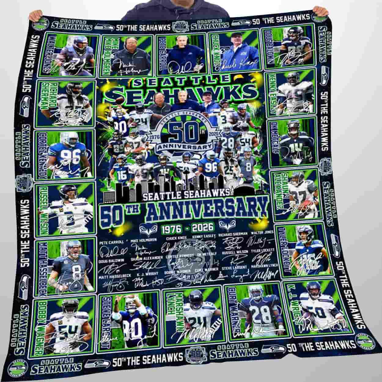 Celebrate five decades of Seahawks greatness with the Seahawks 50th Anniversary 1976-2026 Blanket—an iconic tribute to legendary players and unforgettable moments.