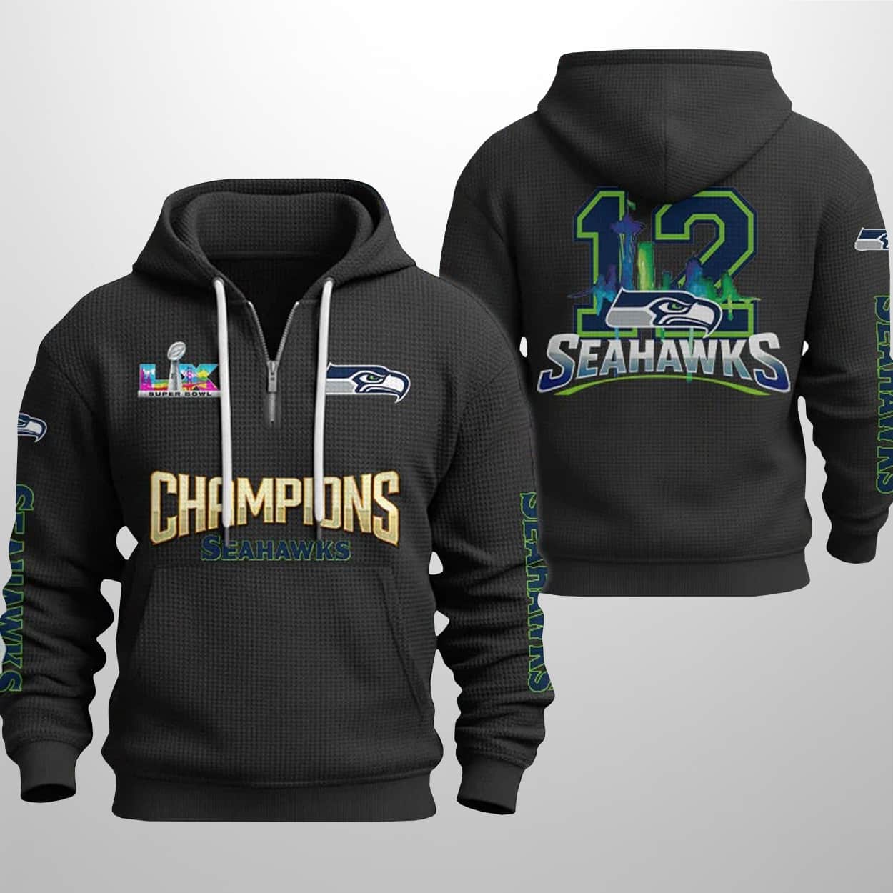 Seahawks SB LX Champions 2026 Waffle Half Zip Hoodie