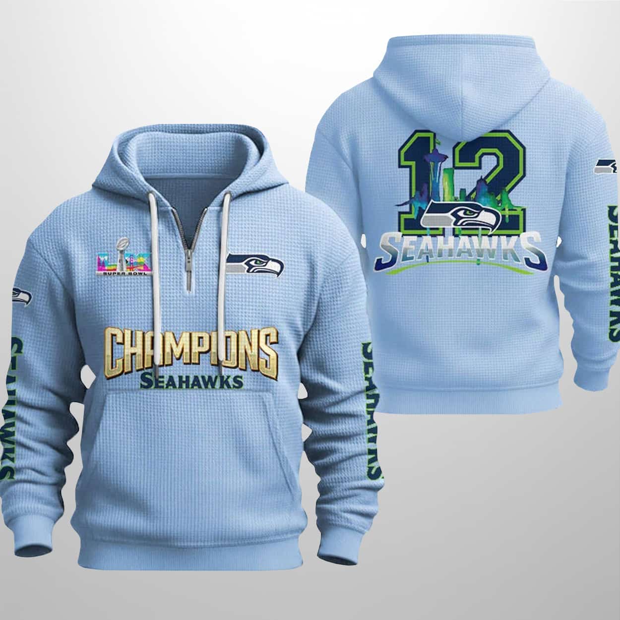 Be the first to review “Seahawks SB LX Champions 2026 Waffle Half Zip Hoodie” Cancel reply