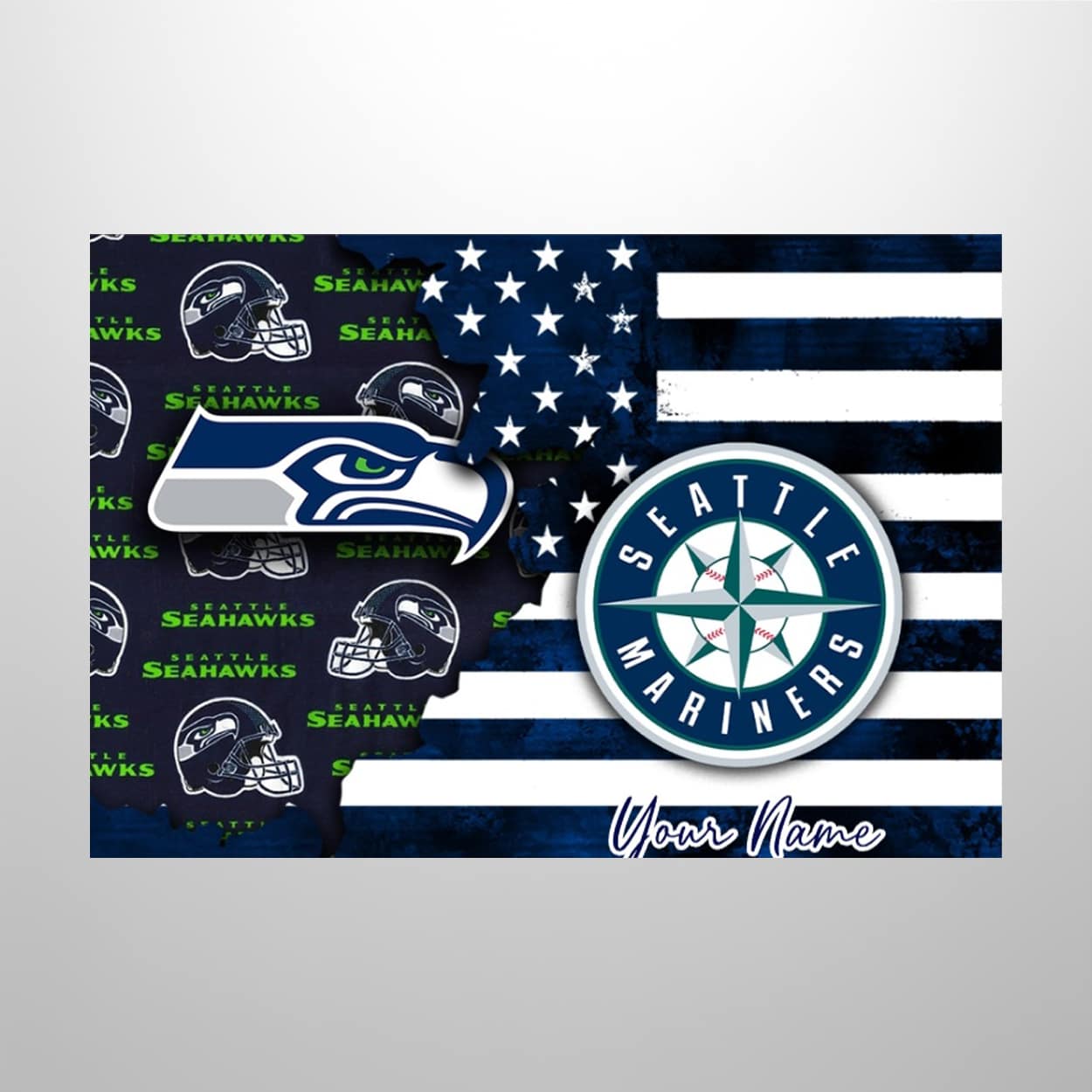 Celebrate your Seattle sports pride with the Seahawks x Mariners Personalized Flag—a bold, customizable tribute to two legendary teams wrapped in patriotic flair.