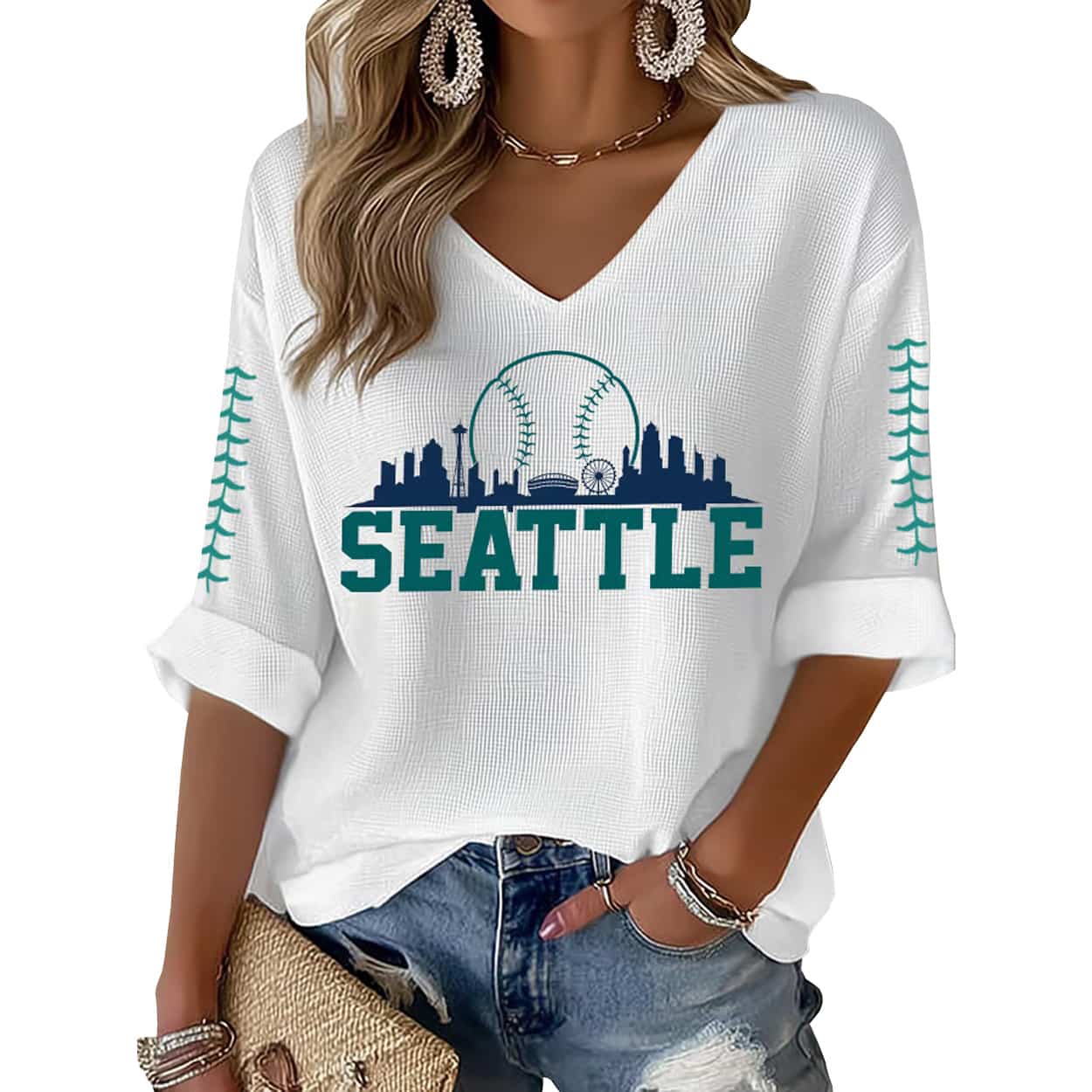 Ready to hit a style home run? Grab your Seattle Baseball Print Waffle Long Sleeve T-Shirt and let your outfit speak volumes. Don’t miss your chance to wear the city on your sleeve!