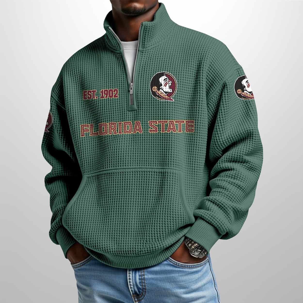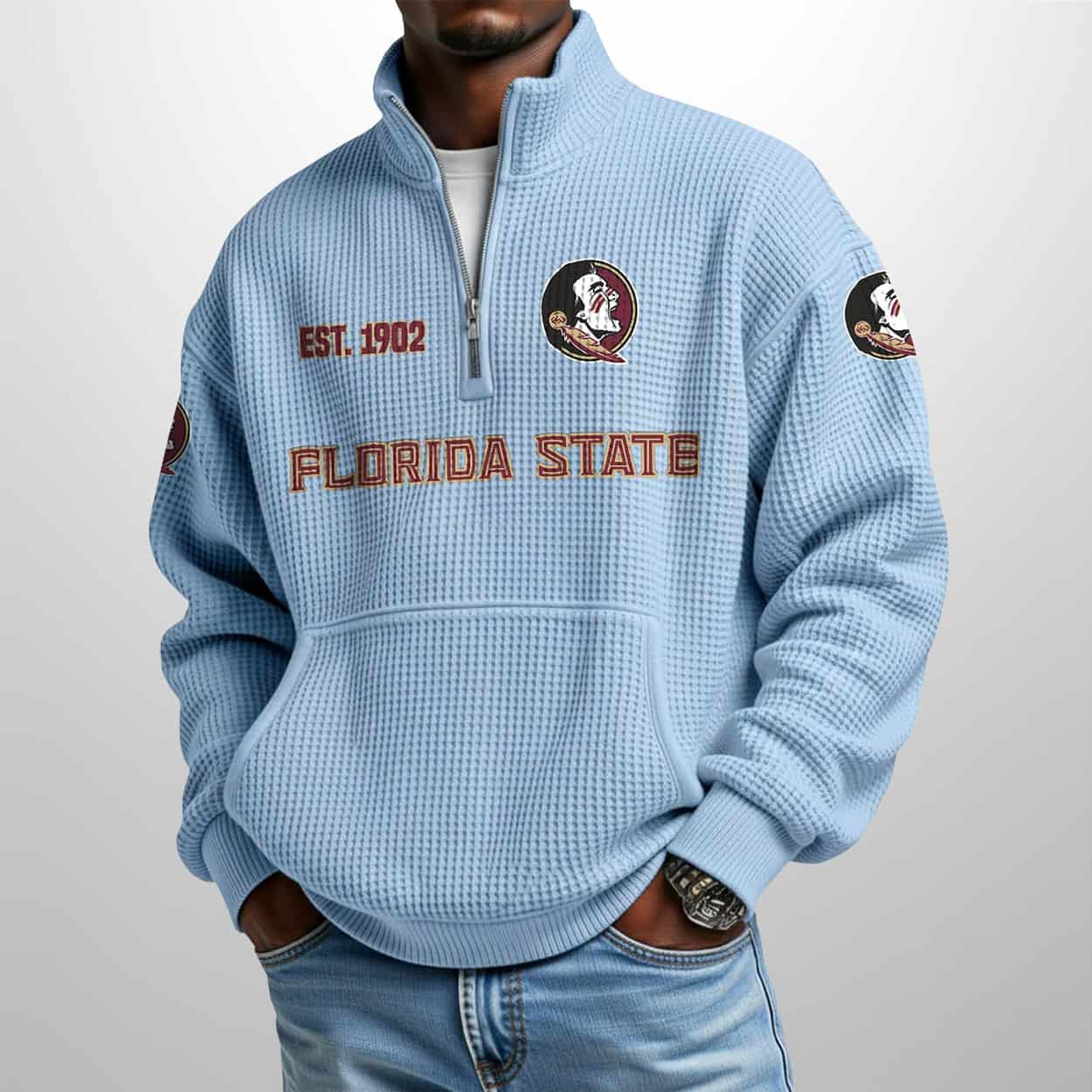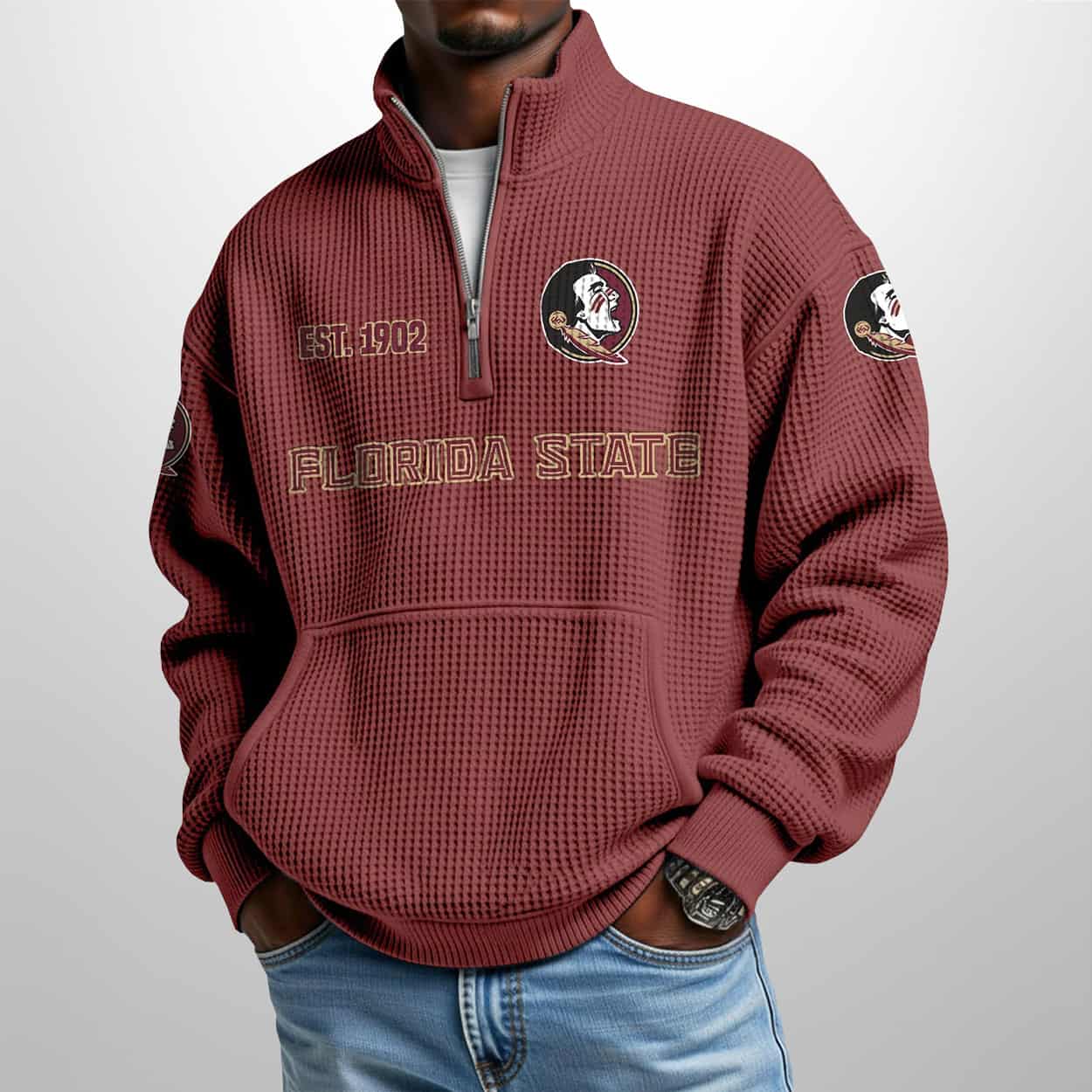 Seminoles Est 1902 Waffle Stand Collar Half Zip Sweatshirt