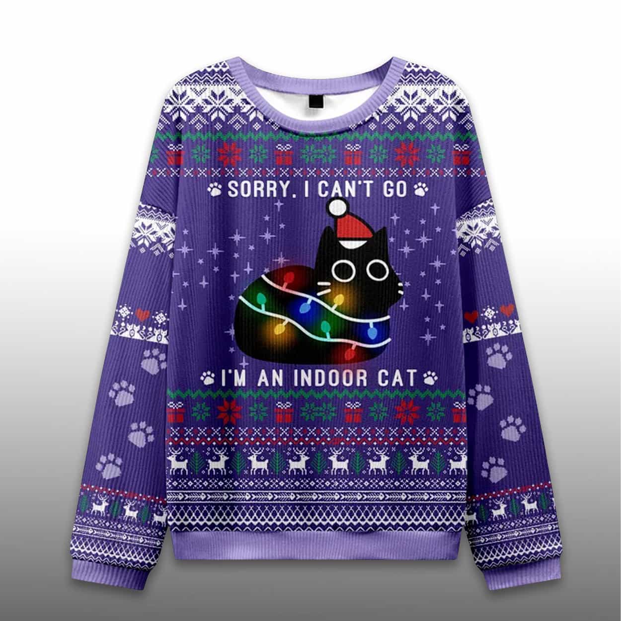 Sorry I’m An Indoor Cat Ugly Christmas Sweater – Purr-fectly Antisocial