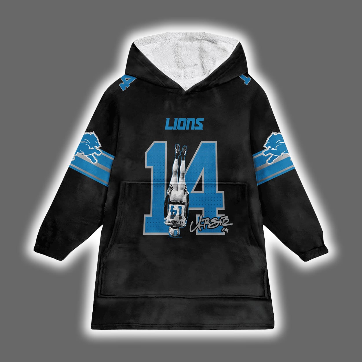 Roar Loud, Lounge Proud: The St. Brown 14 Detroit Football Unisex Blanket Hoodie