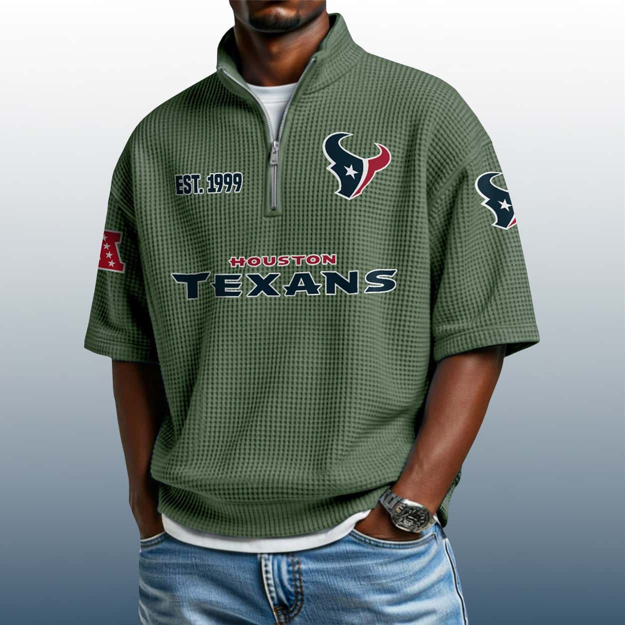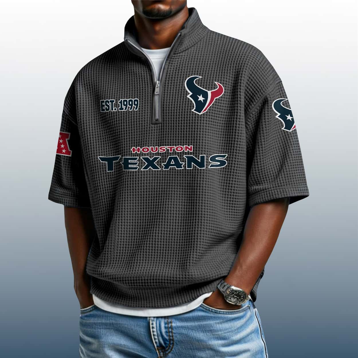 Charge into fan fashion with the Texans Est 1999 Waffle Stand Collar Half Zip Polo Shirt—a bold, textured tribute to Houston’s football firepower. Stylish, spirited, and built for gridiron greatness.