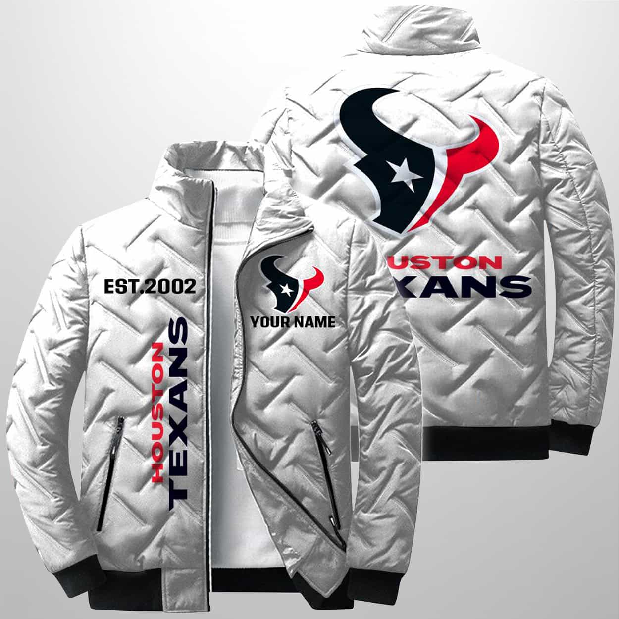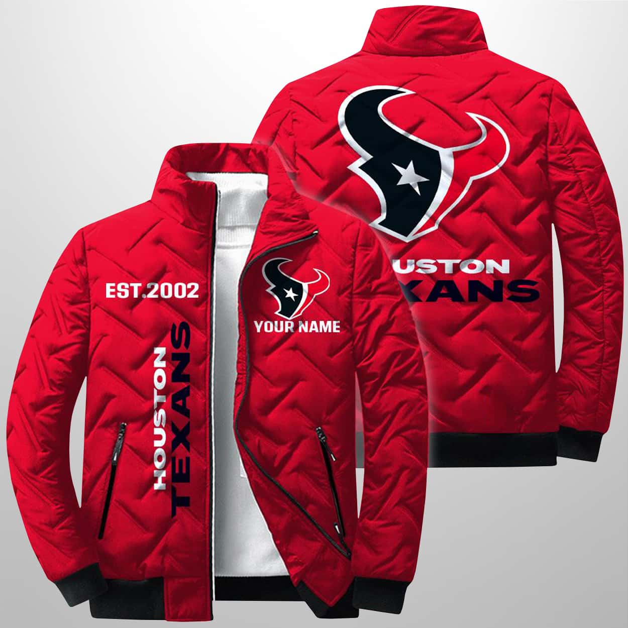 Show off your Texans pride and stay warm in the Texans Est 2002 Winter Warm Quilted Jacket—bold, customizable, and built for fans who tackle winter with team spirit.