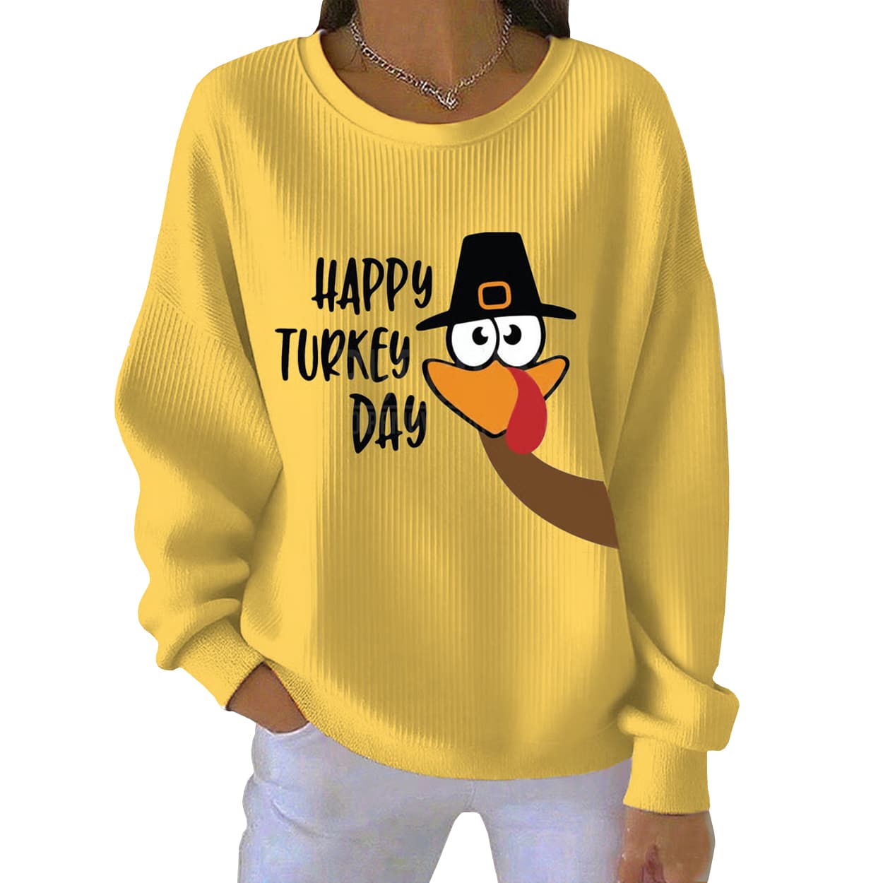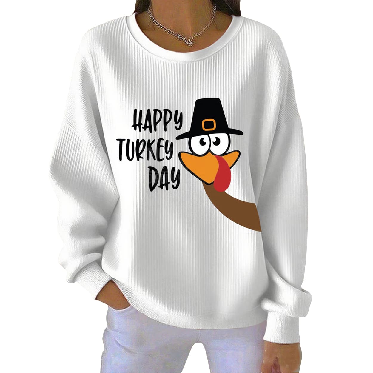 Gobble up the spotlight this season with the Thanksgiving Happy Turkey Day Print Ribbed Pit Striped Sweatshirt—a cheeky, festive favorite that brings humor and holiday charm to your wardrobe.