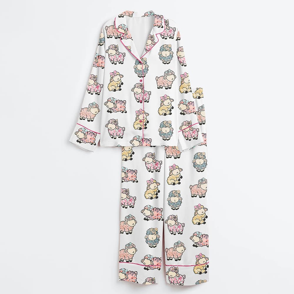 Inspired by the comforting words of Psalm 23, “The Lord is my shepherd,” this pajama set celebrates the joy of Easter and the guidance of faith. The playful sheep print symbolizes the flock under the Lord’s care, with each little lamb representing innocence, love, and renewal—perfect for the Easter season. The pastel palette and floral accents evoke the freshness of spring, while the satin fabric adds a touch of elegance. This set isn’t just sleepwear; it’s a bold statement for those who want to wear their faith with a smile, blending spirituality with a lighthearted, modern twist.