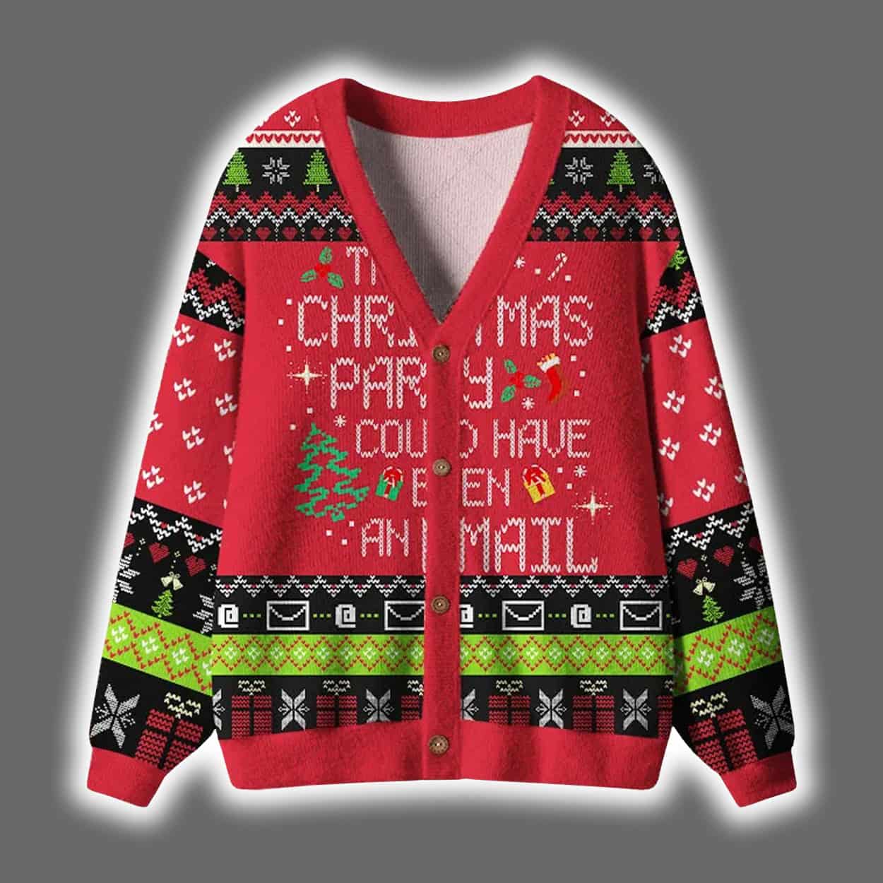 Ready to make a statement without saying a word? Slip into the This Party Could Have Been An Email Christmas Cardigan and let your outfit speak volumes. Ideal for parties, Zoom calls, or just surviving the season with style.