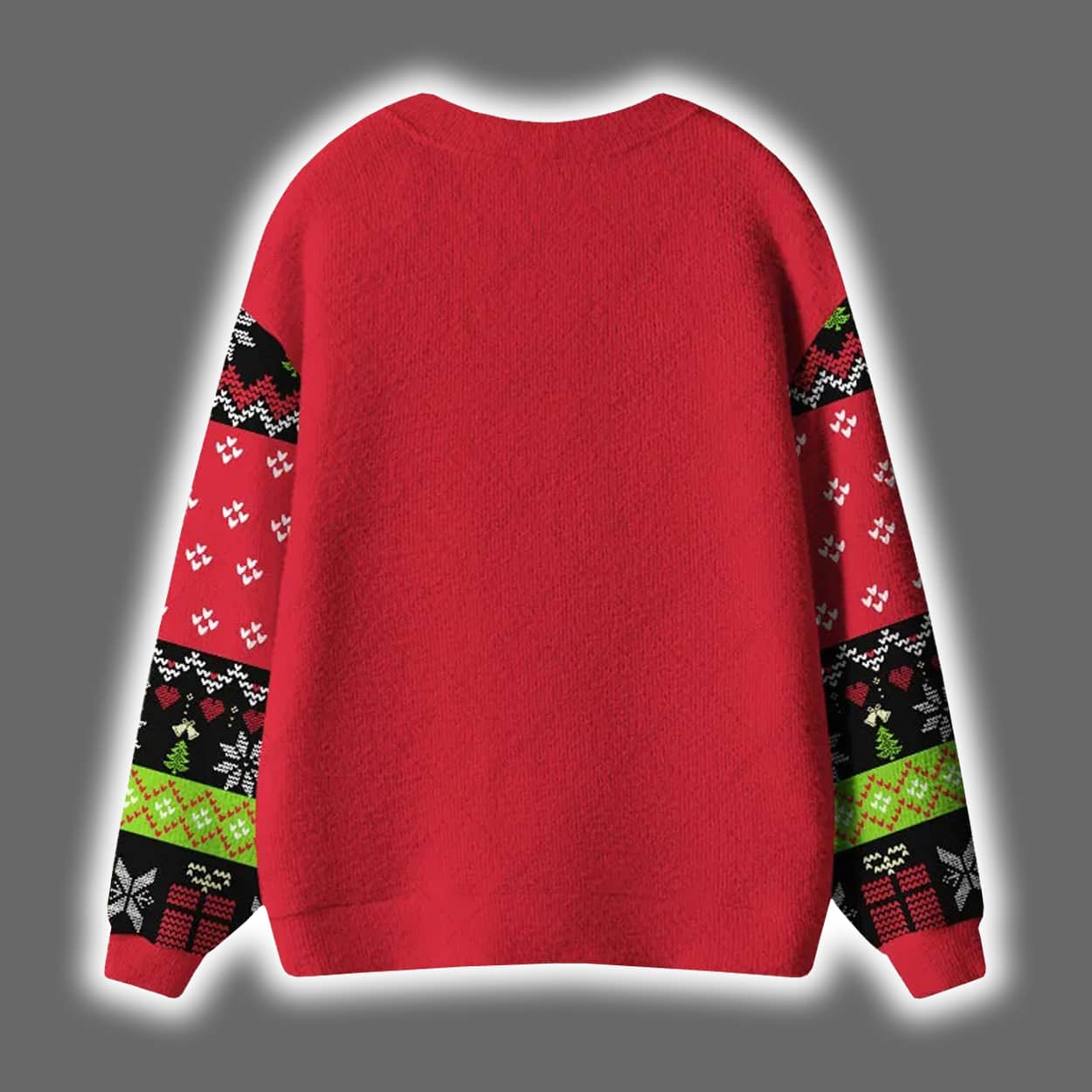 Bring a dose of dry humor to the holiday season with this cardigan. This cardigan is decked out with classic festive motifs—Christmas trees, snowflakes, gift boxes, and geometric patterns in green, black, and white. But the real star of the show is the bold statement across the front: “THIS CHRISTMAS PARTY COULD HAVE BEEN AN EMAIL.” The back keeps it simple with a solid red finish, letting the front do all the talking. It’s cozy, cheeky, and unapologetically honest.
