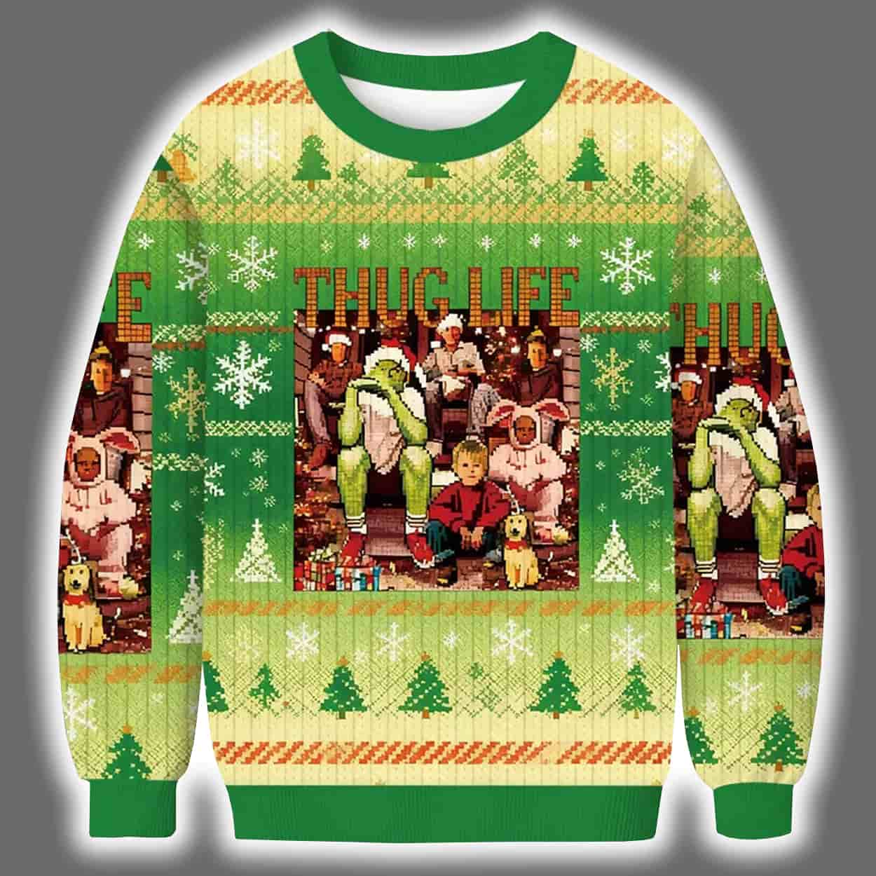 Thug Life, Holiday Style: The Thug Life Christmas Movie Friends Ugly Christmas Sweater That Sleighs Expectations
