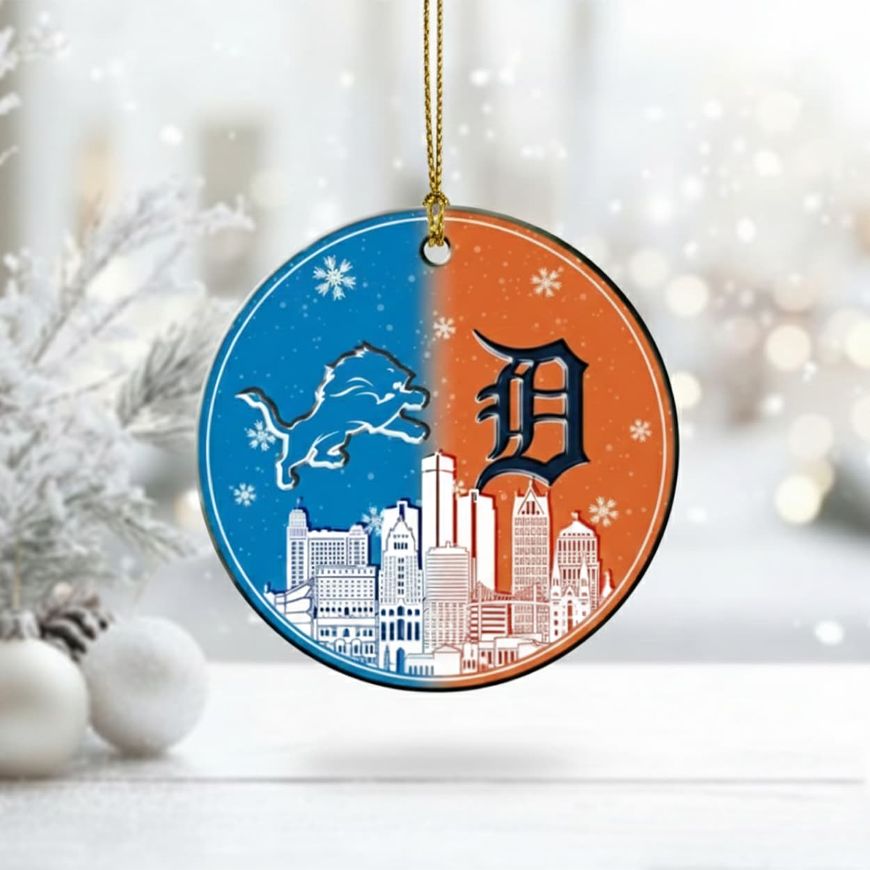Detroit Spirit in Every Sparkle: The Tigers x Lions Skyline Christmas Ornament