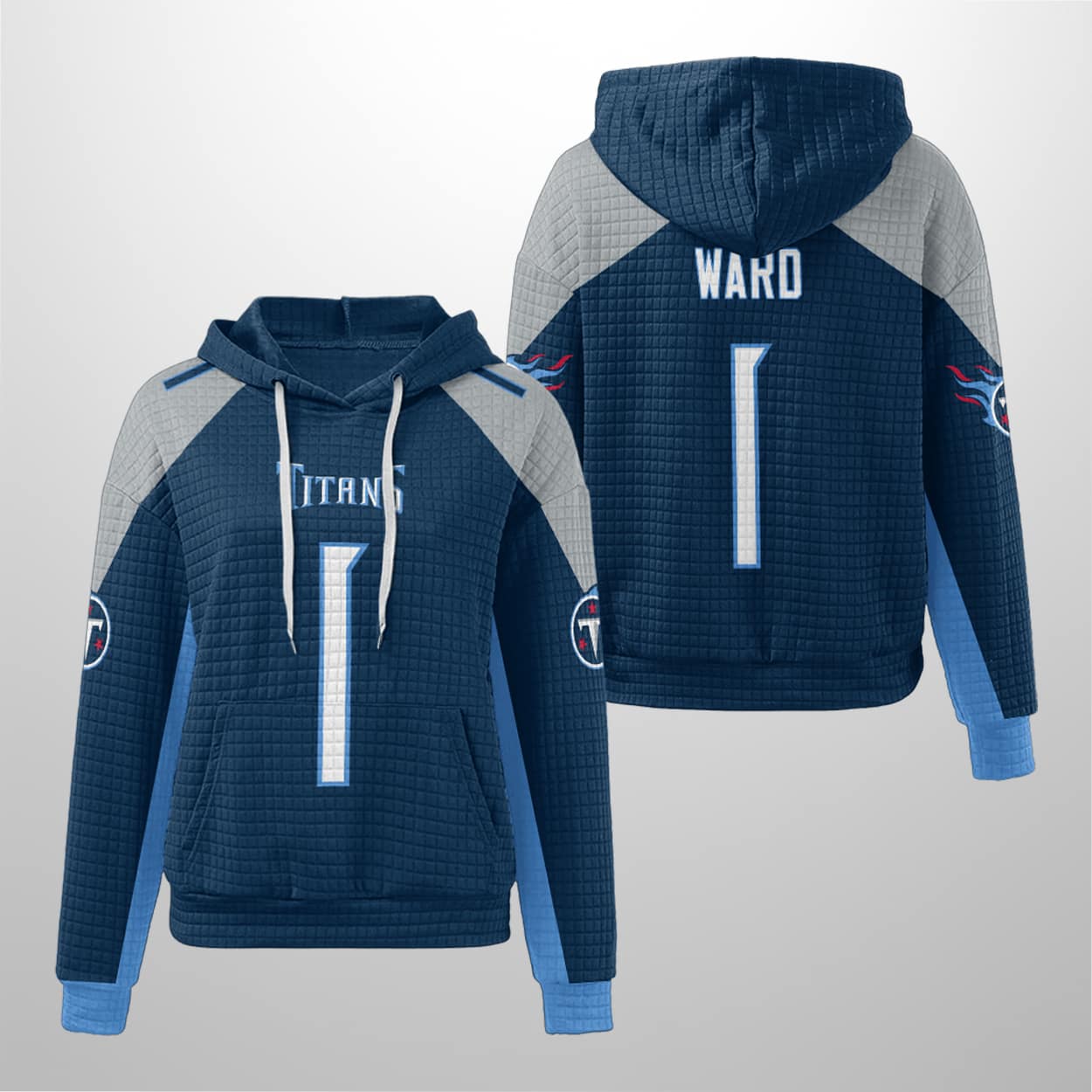 Charge into game day with the Titans Cam Ward 1 Waffle Hoodie — a bold tribute to leadership, flair, and Tennessee pride.