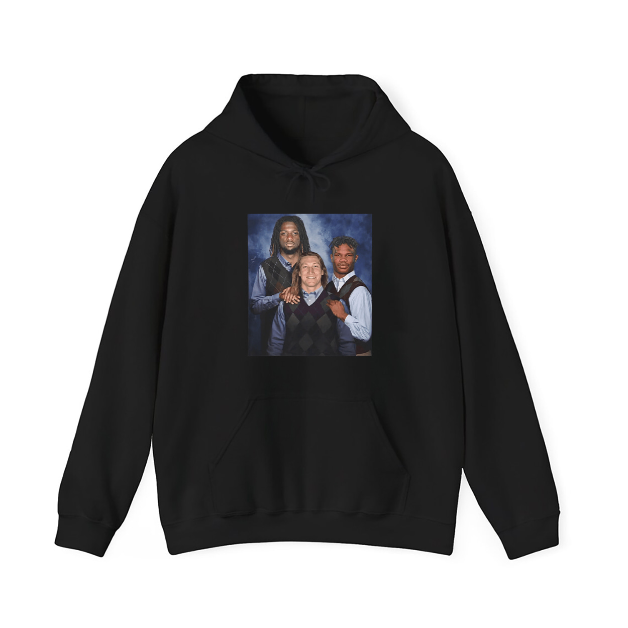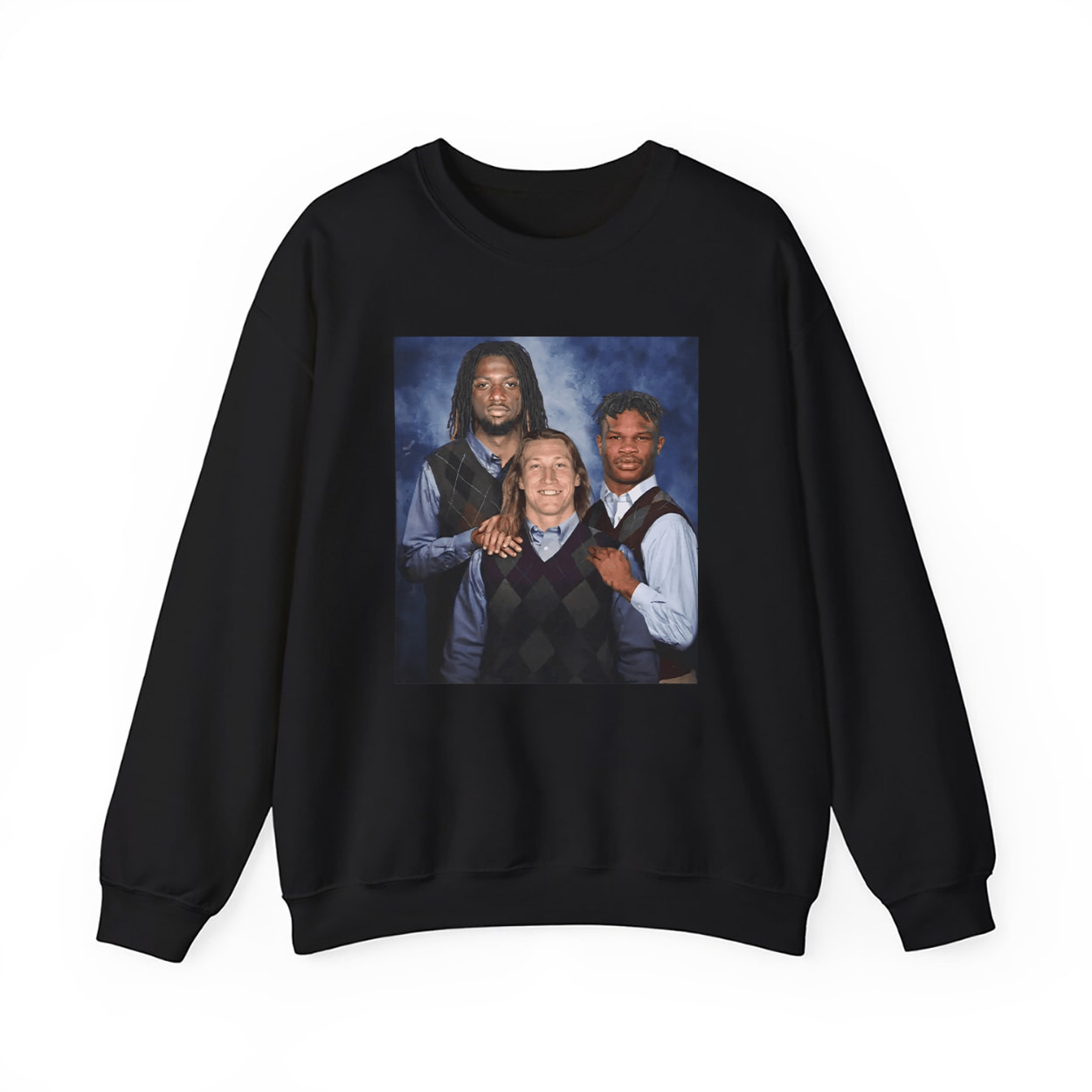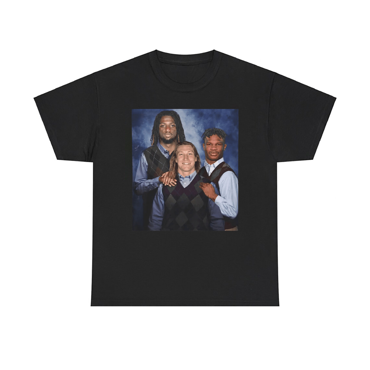 Say hello to the shirt that breaks the internet and tackles your funny bone. This shirt is a visual touchdown—an awkward family photo turned sports satire. Featuring the trio of football phenoms posed in matching sweater vests and button-downs against a cloudy blue backdrop, this tee captures the essence of the Step Brothers movie aesthetic with a hilarious twist. It’s stiff, it’s wholesome, and it’s wildly out of place—in the best way possible.