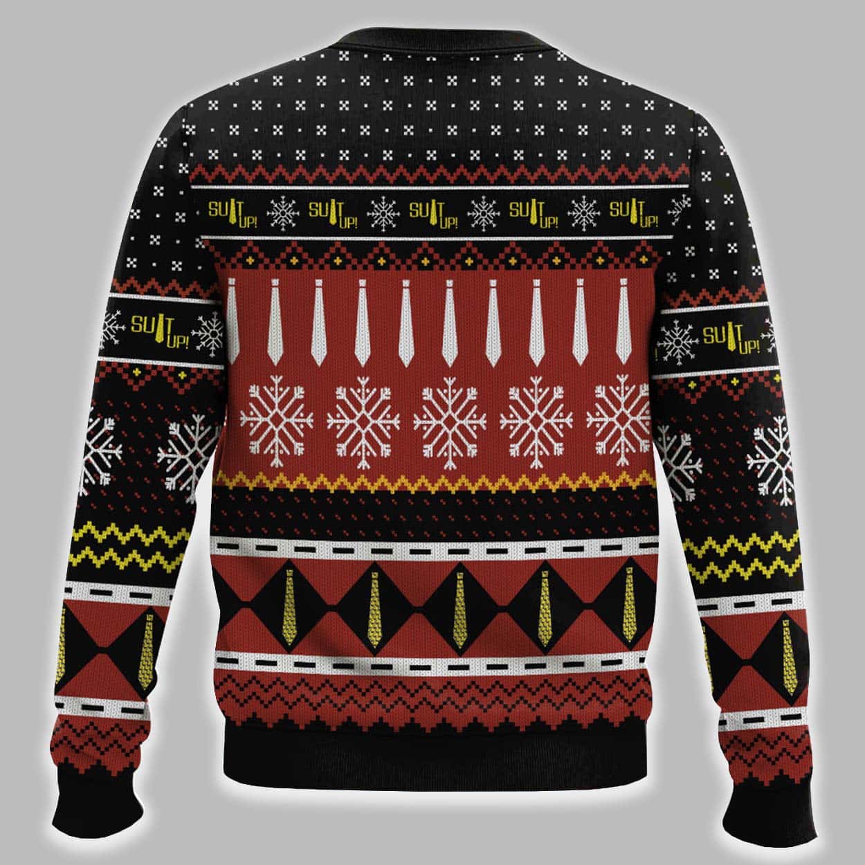 This pullover is, in a word, legendary. It’s the ultimate ugly Christmas sweater for any How I Met Your Mother fan, designed in a classic black, red, and yellow knit-style pattern. The front proudly features Barney Stinson himself, raising a glass of wine above his most famous catchphrase: “TRUE STORY.” The rest of the sweater is a perfect tribute, covered in repeating patterns of white and yellow neckties, snowflakes, and, of course, the iconic command to “SUIT UP!”